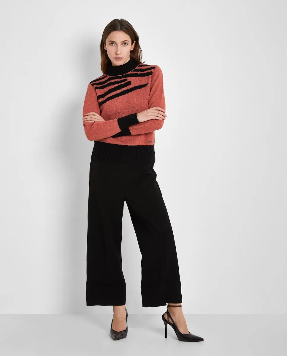 Джемпер с принтом на передней части, воротником типа Перкинс и сборкой на манжетах и подоле.