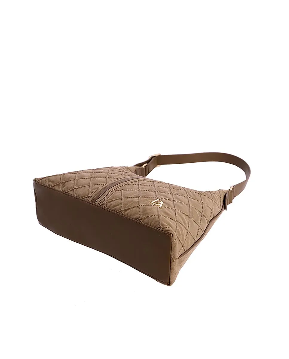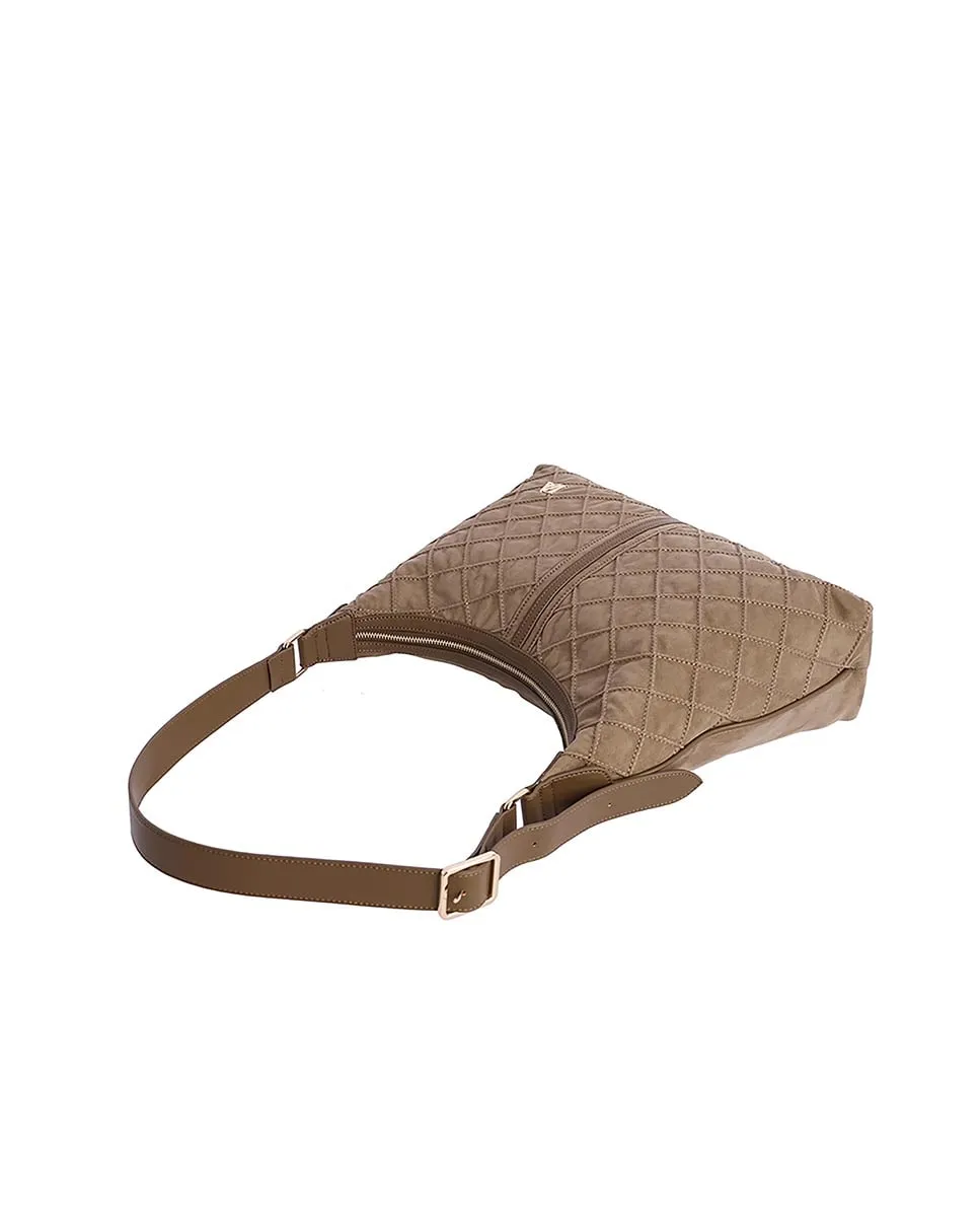 Женская сумка через плечо DON ALGODON Sibera из замши с декоративной строчкой, с логотипом на передней части. Ручки выполнены из искусственной кожи. Закрывается на молнию с металлической тягачкой с логотипом. Внутри три кармана: два спереди и один сзади на молнии, а также еще один наружный карман сзади на молнии. Размеры: 38 (ширина) x 10 (глубина) x 23 (высота) см.