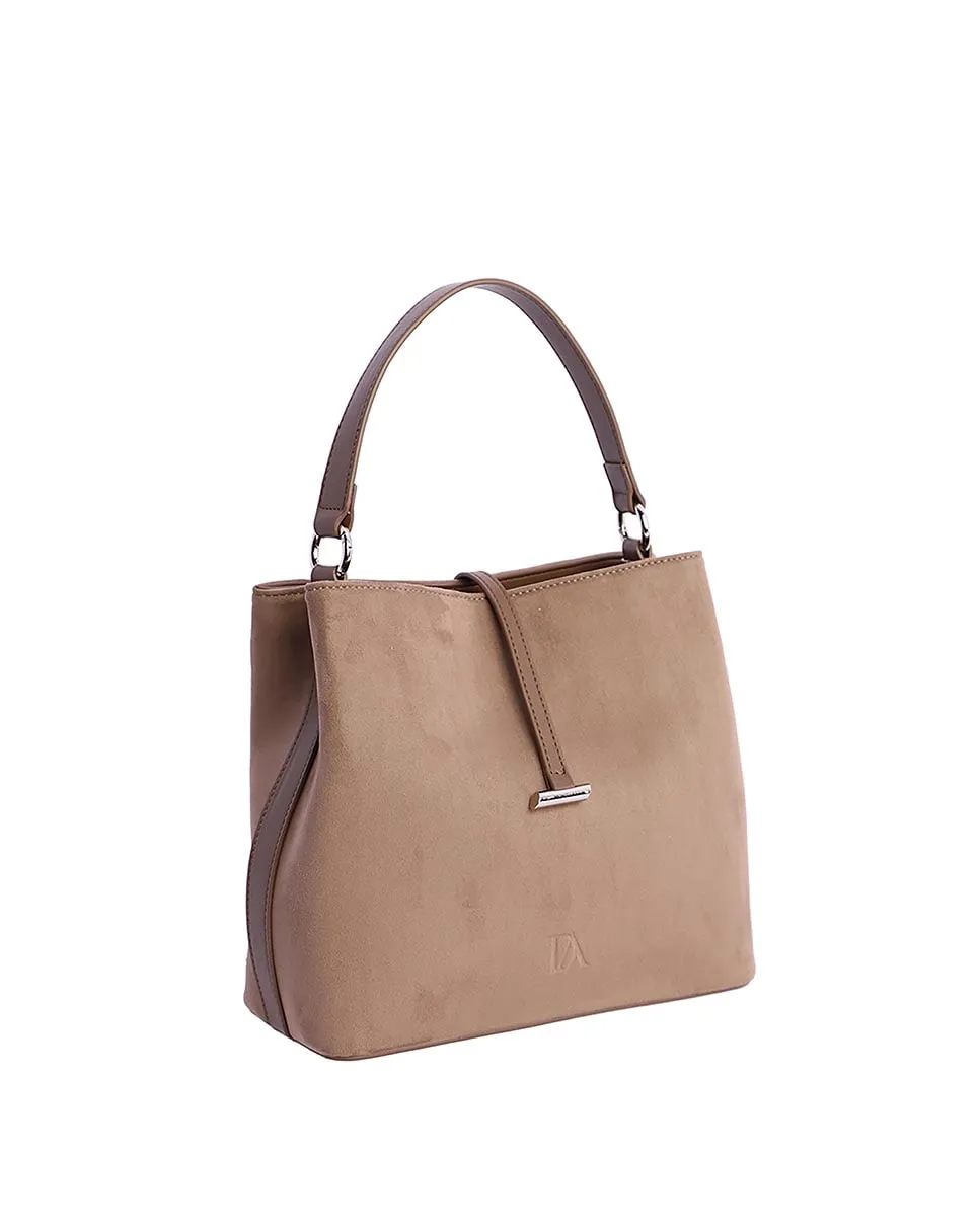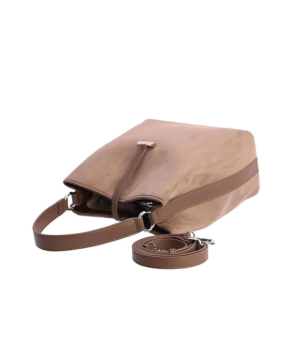 Женская сумка через плечо DON ALGODON Selvik из замши с ручками из искусственной кожи, логотип выгравирован на передней части. Имеет застежку-молнию с металлическим бегунком с логотипом. Имеется съемный и регулируемый плечевой ремень. Внутри три кармана, два спереди и один сзади на молнии, а также еще один внешний задний карман на молнии. Размеры: 31(ширина) x 14(глубина) x 27(высота) см.