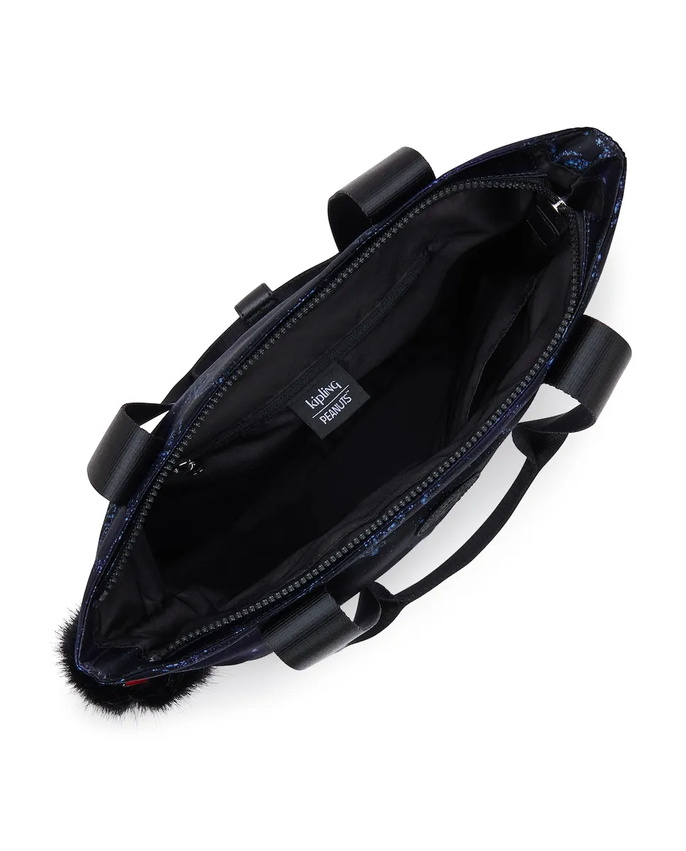 Прибыла доза детской ностальгии и безграничного веселья для мечтателей! Мы объединились с легендарным Снупи, чтобы создать эту джинсовую сумку-тоут с отличительными рисунками Снупи, выполненными вручную. Детали включают серебряный логотип Kipling, ярко-красную подкладку с графикой Снупи и наш культовый брелок в виде обезьяны в красном свитере и солнцезащитных очках в стиле персонажа Снупи «Джо Кул». Используйте Merita S для поездок на работу или путешествий. В нее поместится все необходимое, включая iPad или ноутбук.