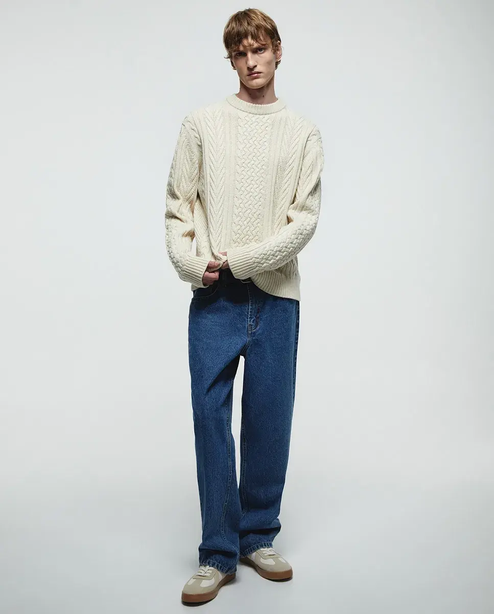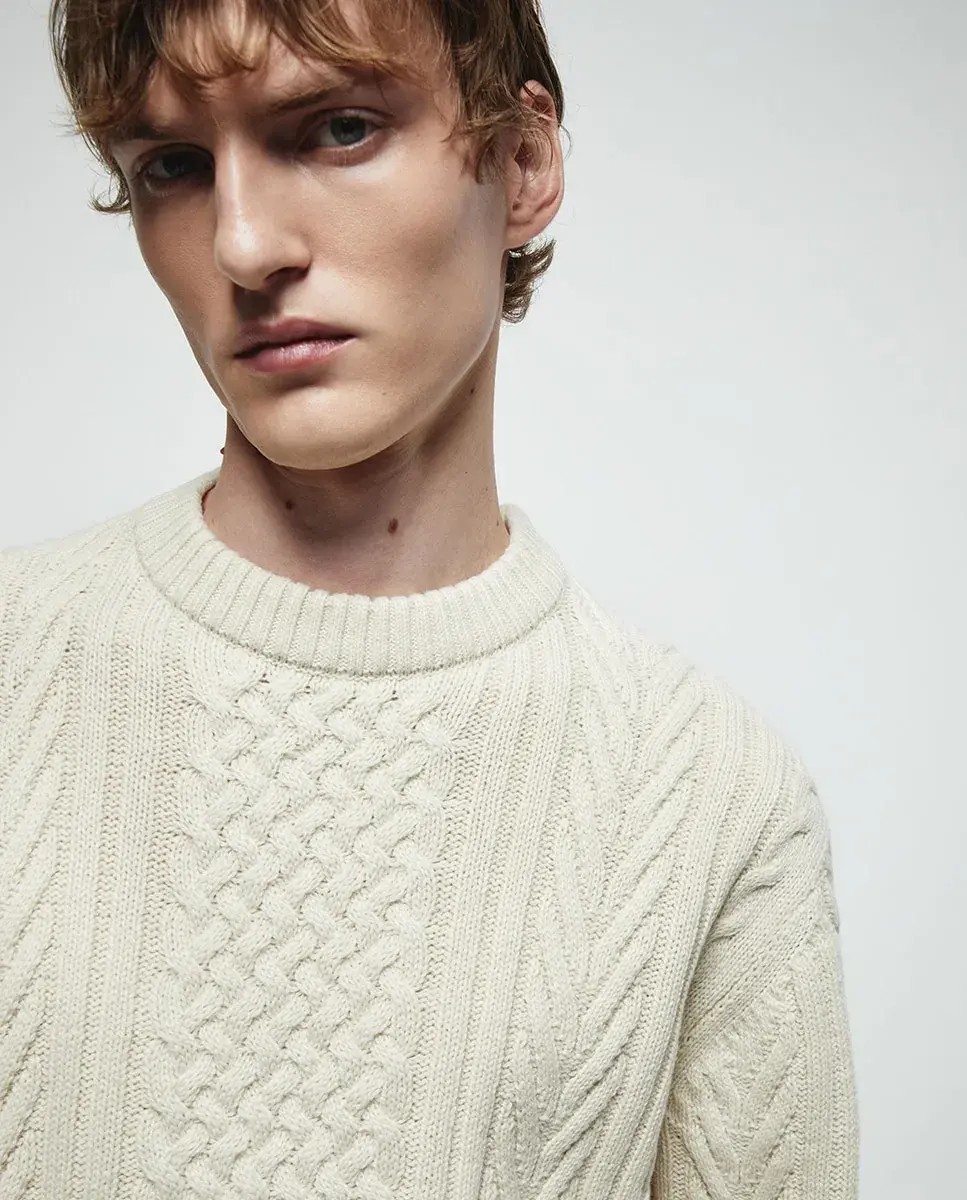 Красный свитер с узором косы Sfera