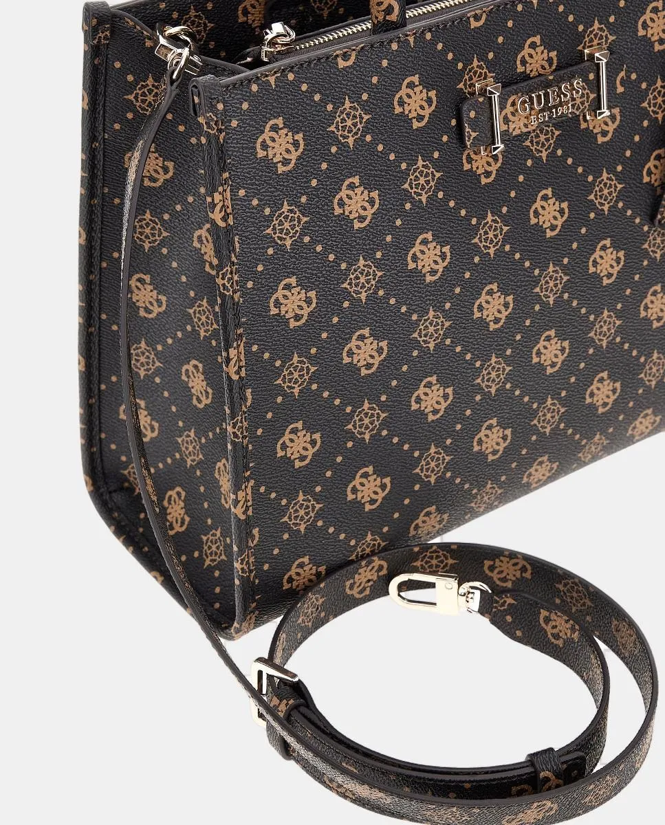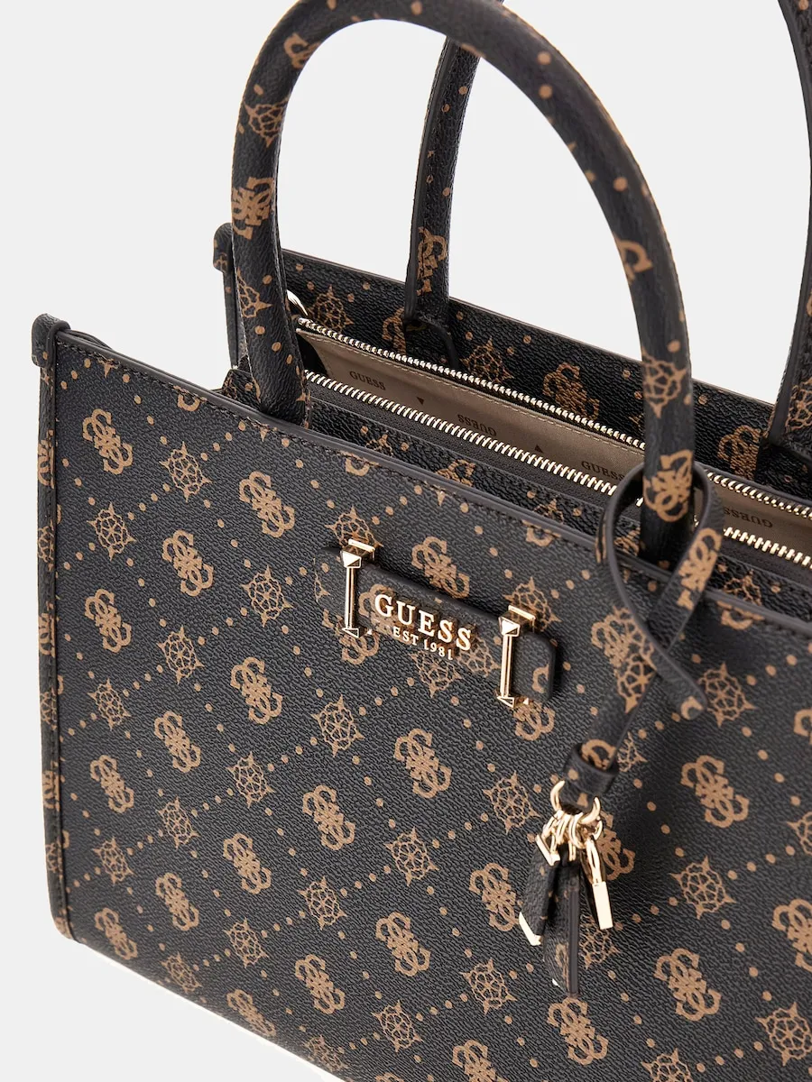 Сумка через плечо модели Silia типа tote, с застежкой-молнией, принтом с новым логотипом, центральным металлическим золотым логотипом Guess, съемной ручкой и задним отделением на молнии