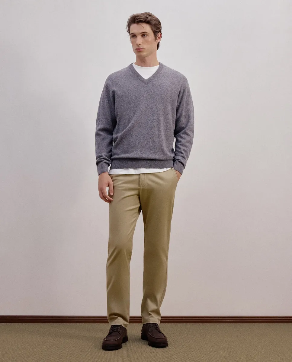 Мужской свитер с V-образным вырезом из овечьей шерсти.