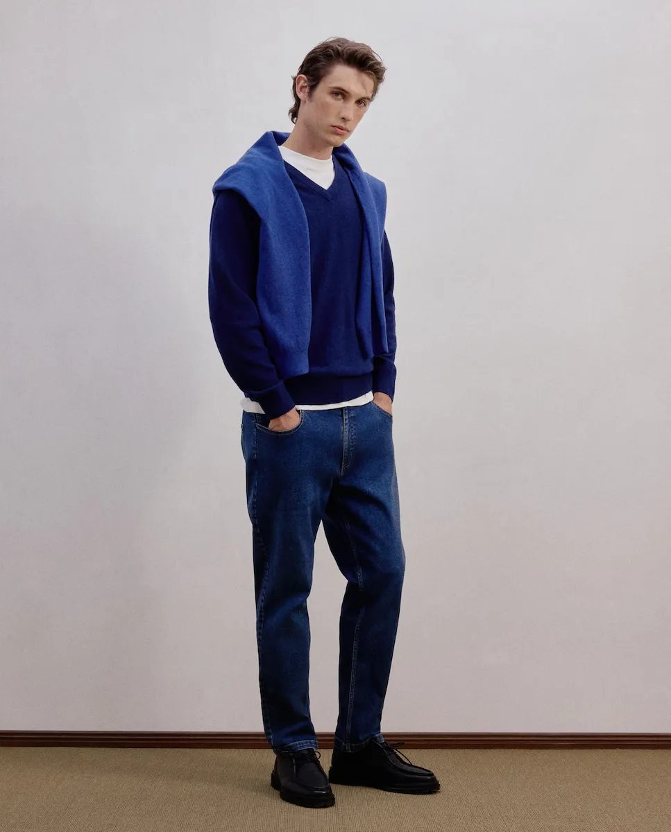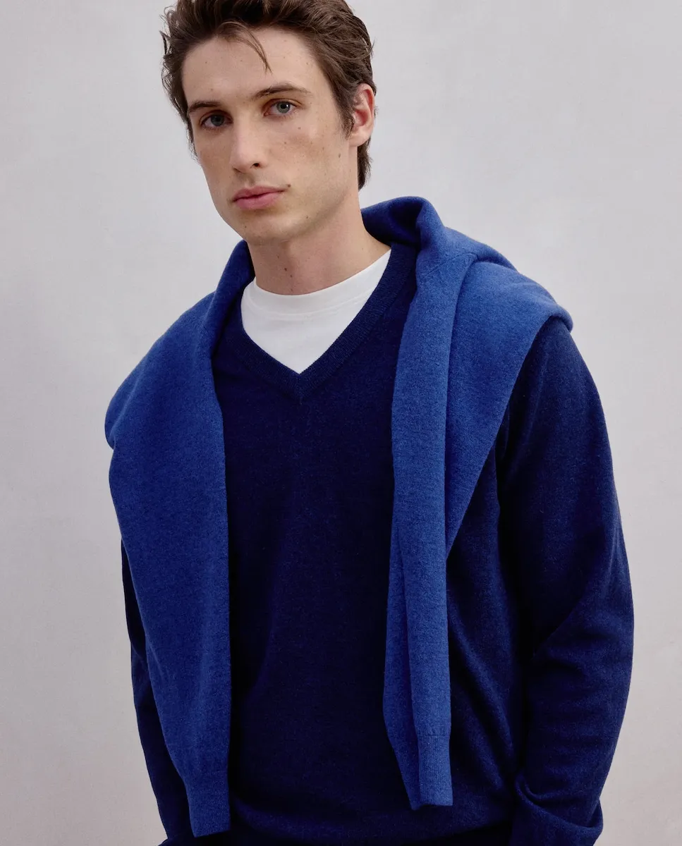 Мужской свитер с V-образным вырезом из овечьей шерсти.