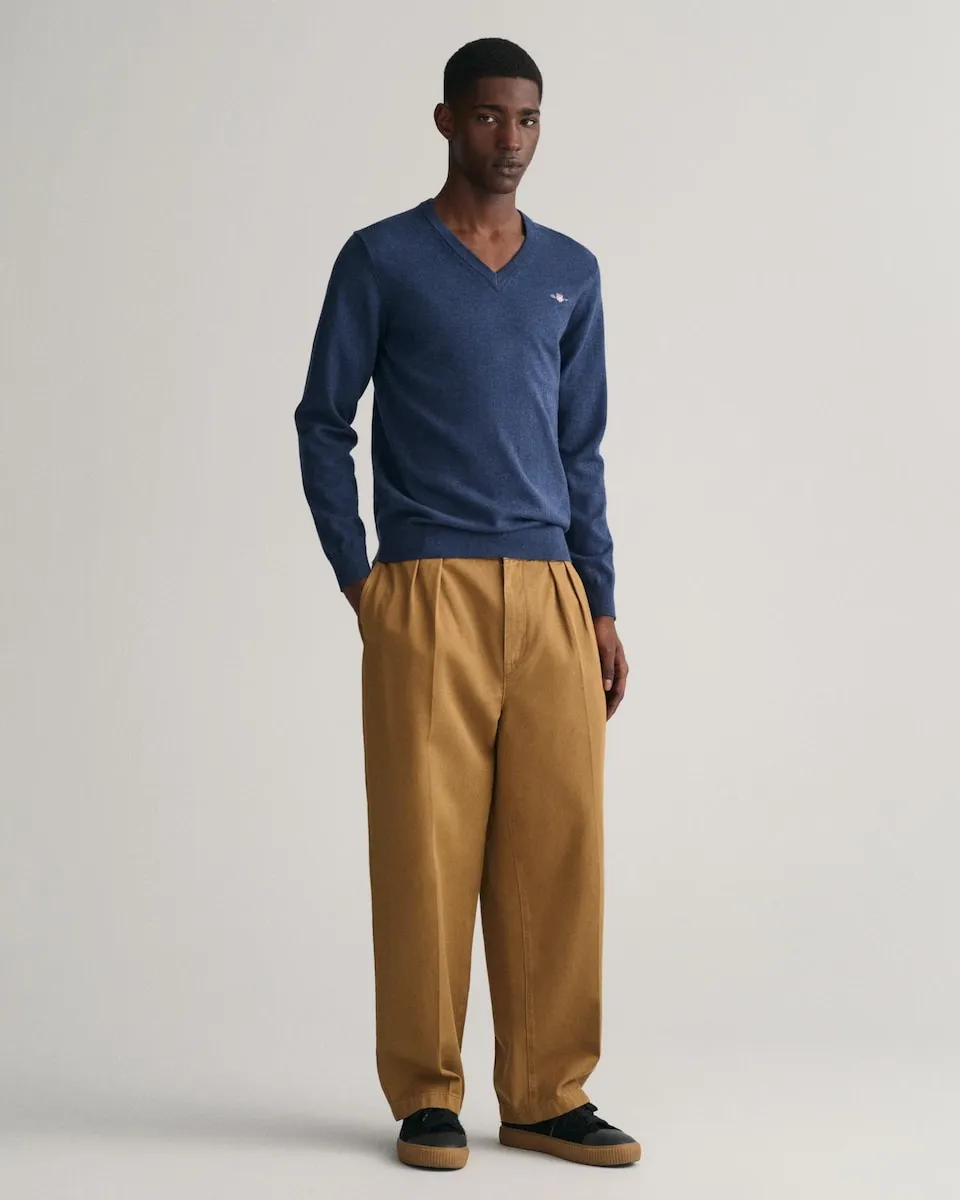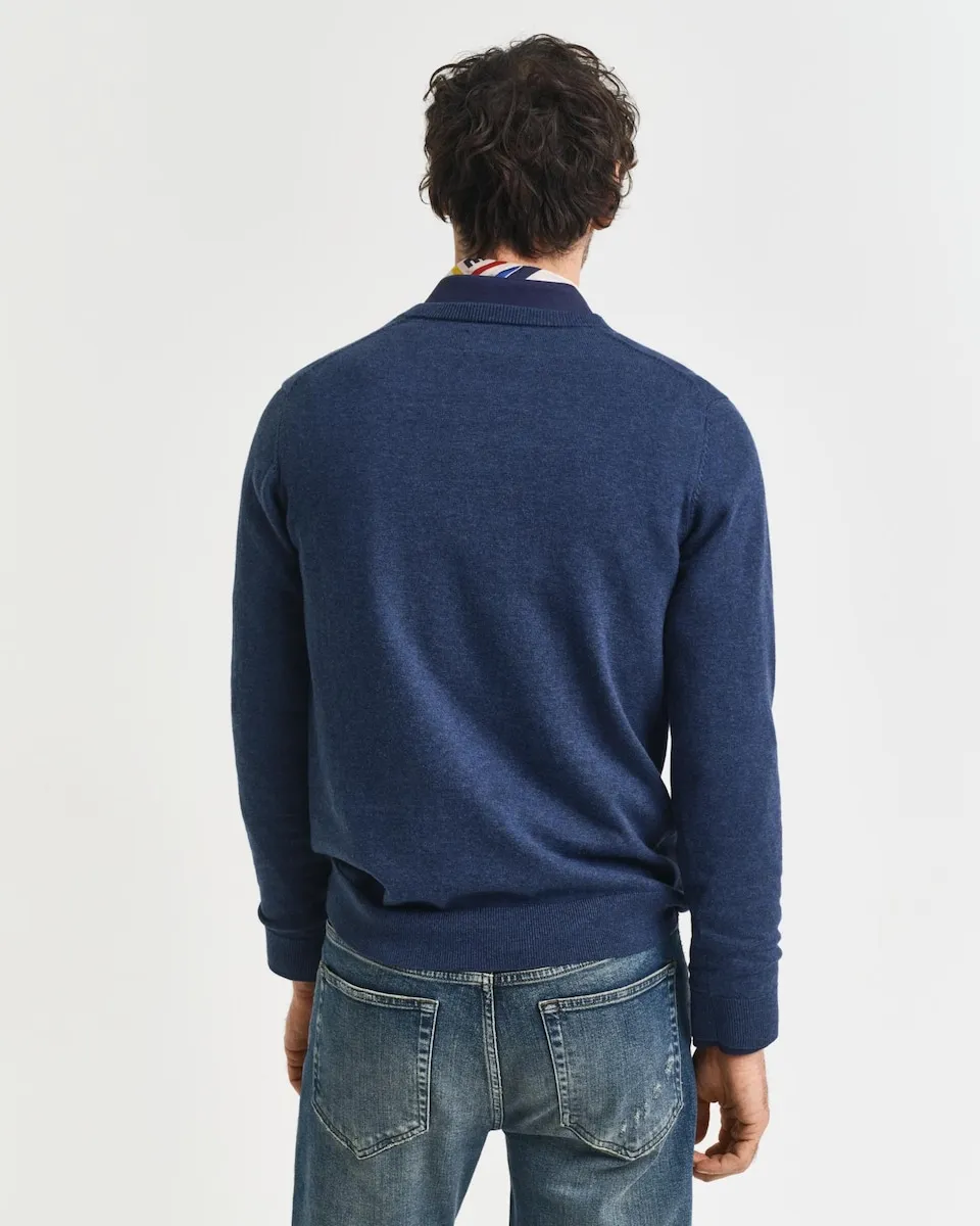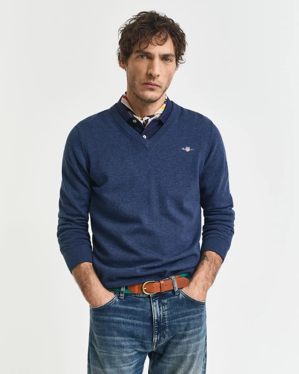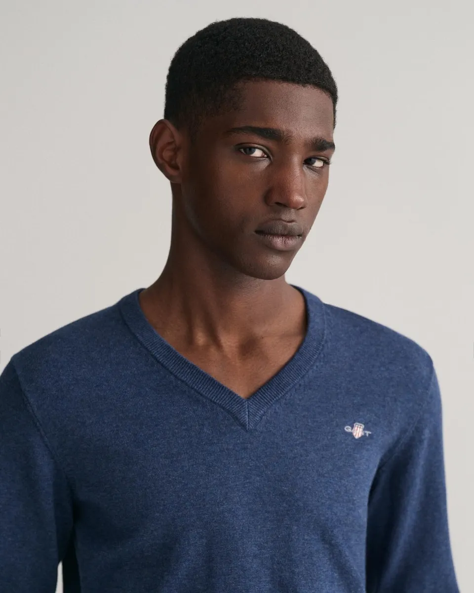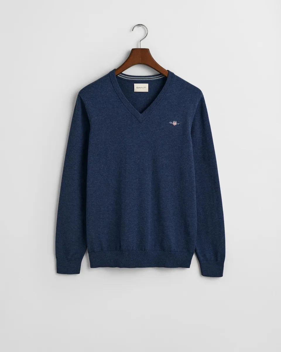 Этот пуловер GANT, прочный и изысканный, изготовлен на 100% из хлопка. Он разработан с обычным кроем и имеет V-образный вырез и рифленые детали внизу и на манжетах. Также есть вышивка GANT на груди. Выбирая наши хлопковые продукты, вы поддерживаете инвестиции GANT в инициативу Better Cotton. Этот продукт был получен с помощью системы баланса массы и, следовательно, может не содержать Better Cotton. Узнайте больше на bettercotton.org/massbalance.