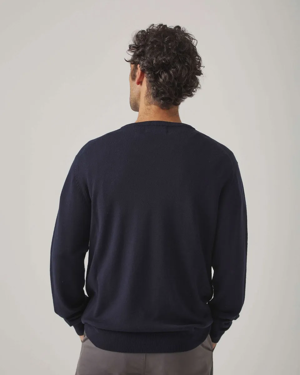 Свитер из 100% мериносовой шерсти. V-образный вырез, рубчик на манжетах и вышитый логотип мотоцикла.