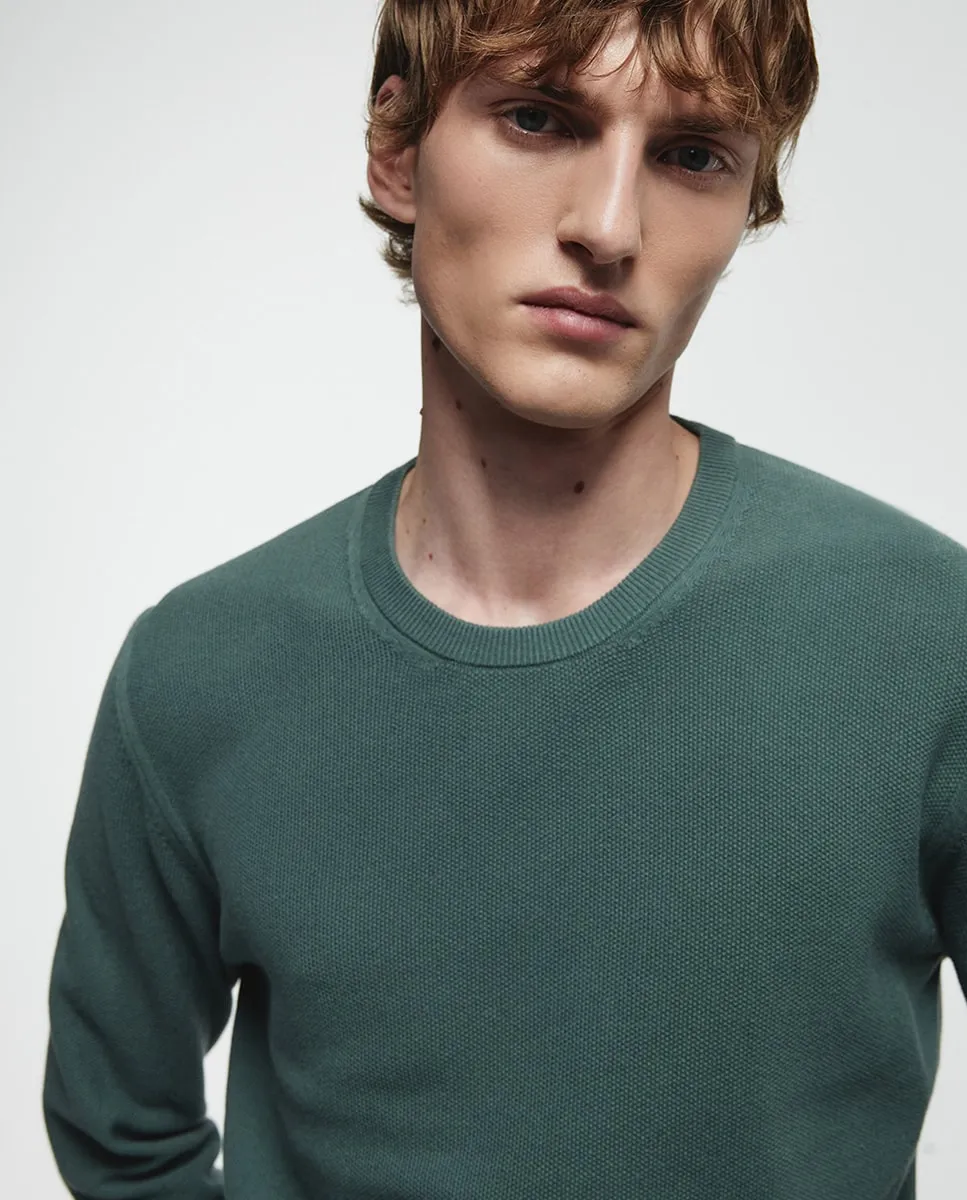 Джемпер с круглым вырезом и длинными рукавами, отделка резинкой. Ткань 100% хлопок