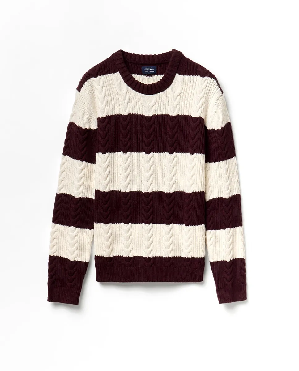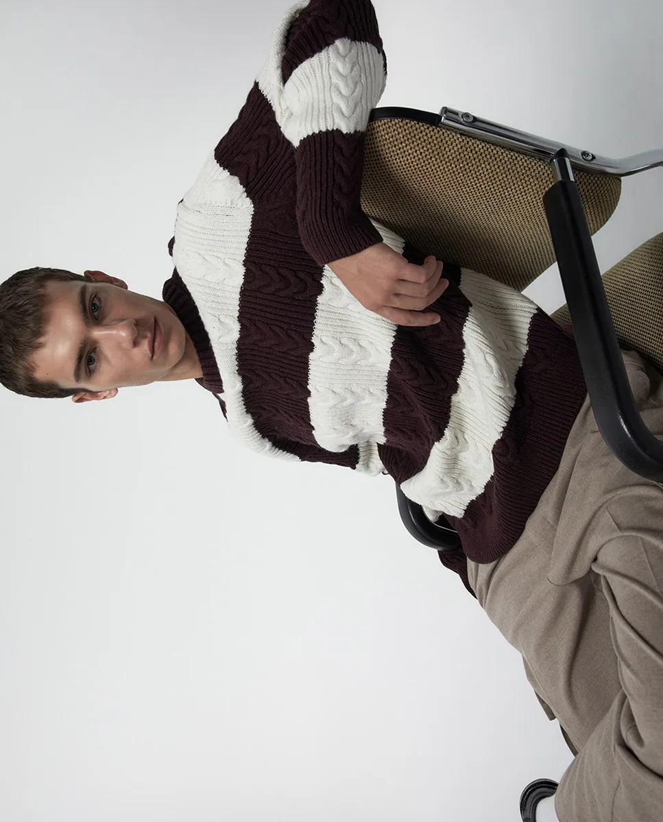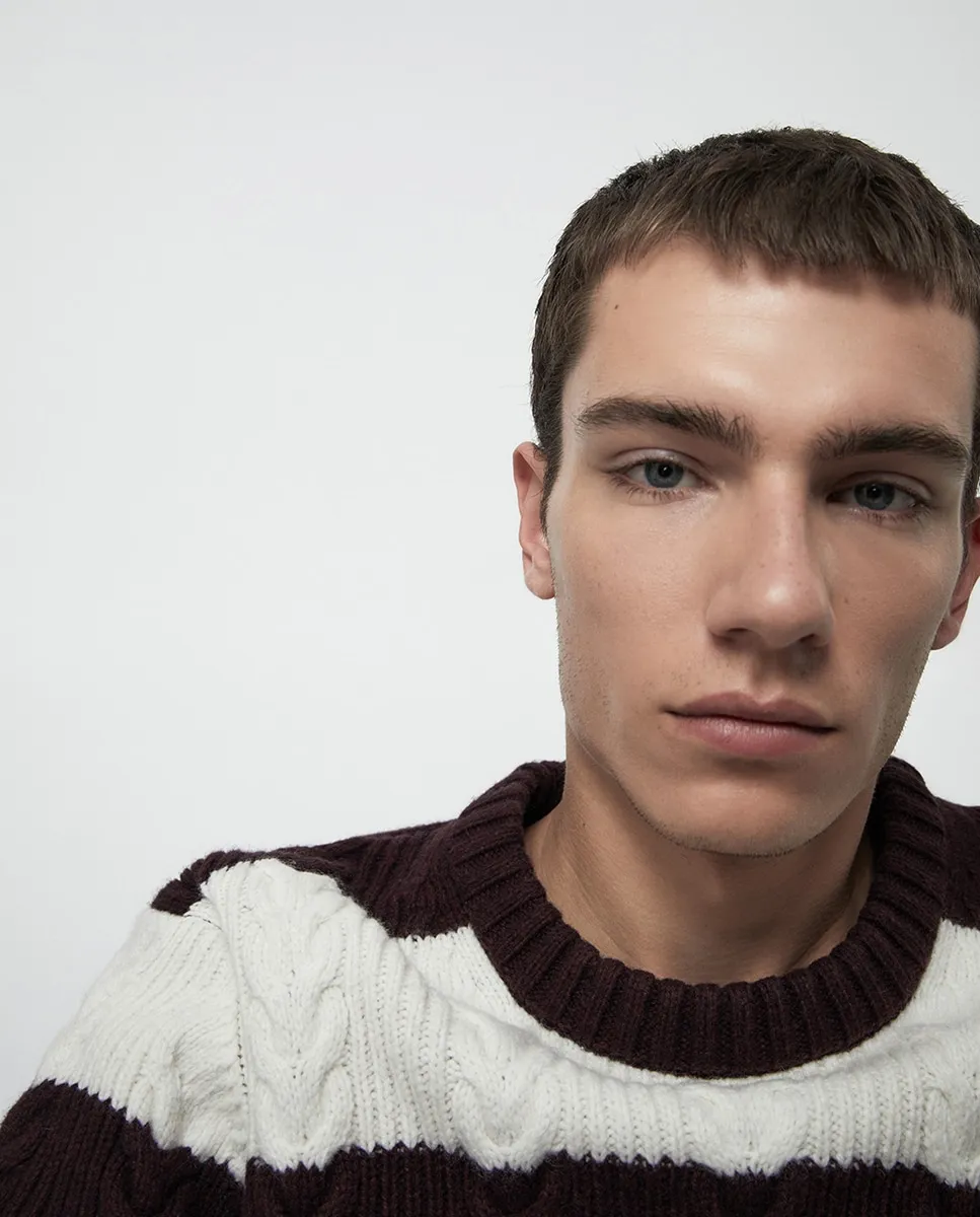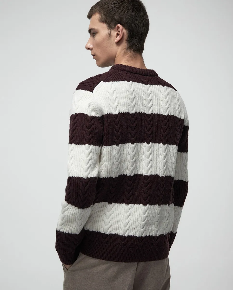 Свитер с круглым вырезом и полосатым вязанием «коса»
