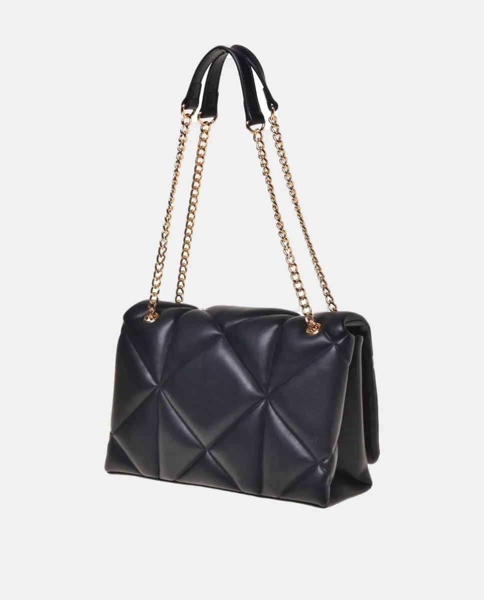 Сумка через плечо. Имеет клапан с застежкой и логотип бренда золотистого цвета на передней части.