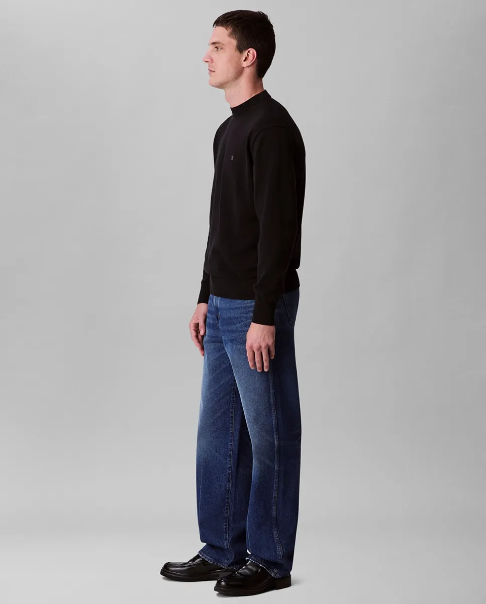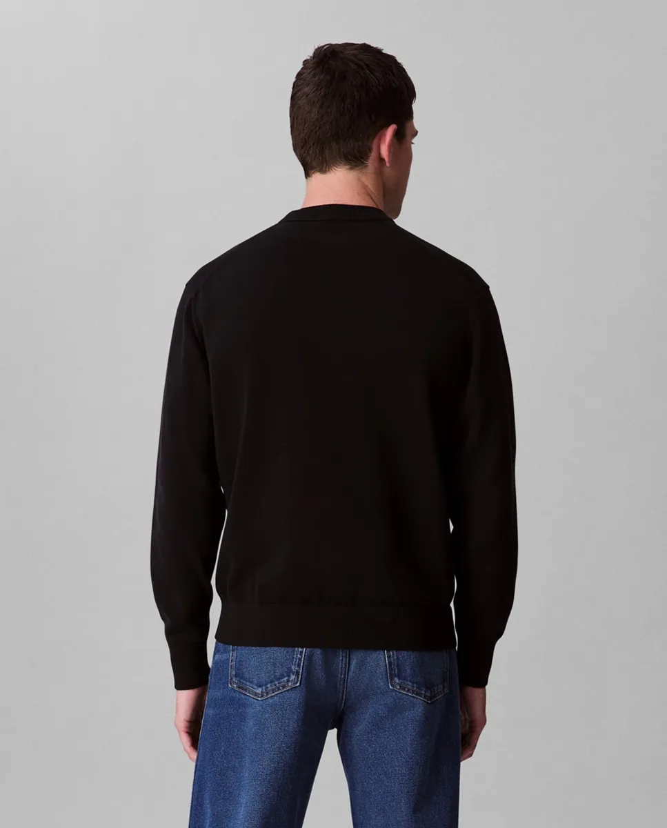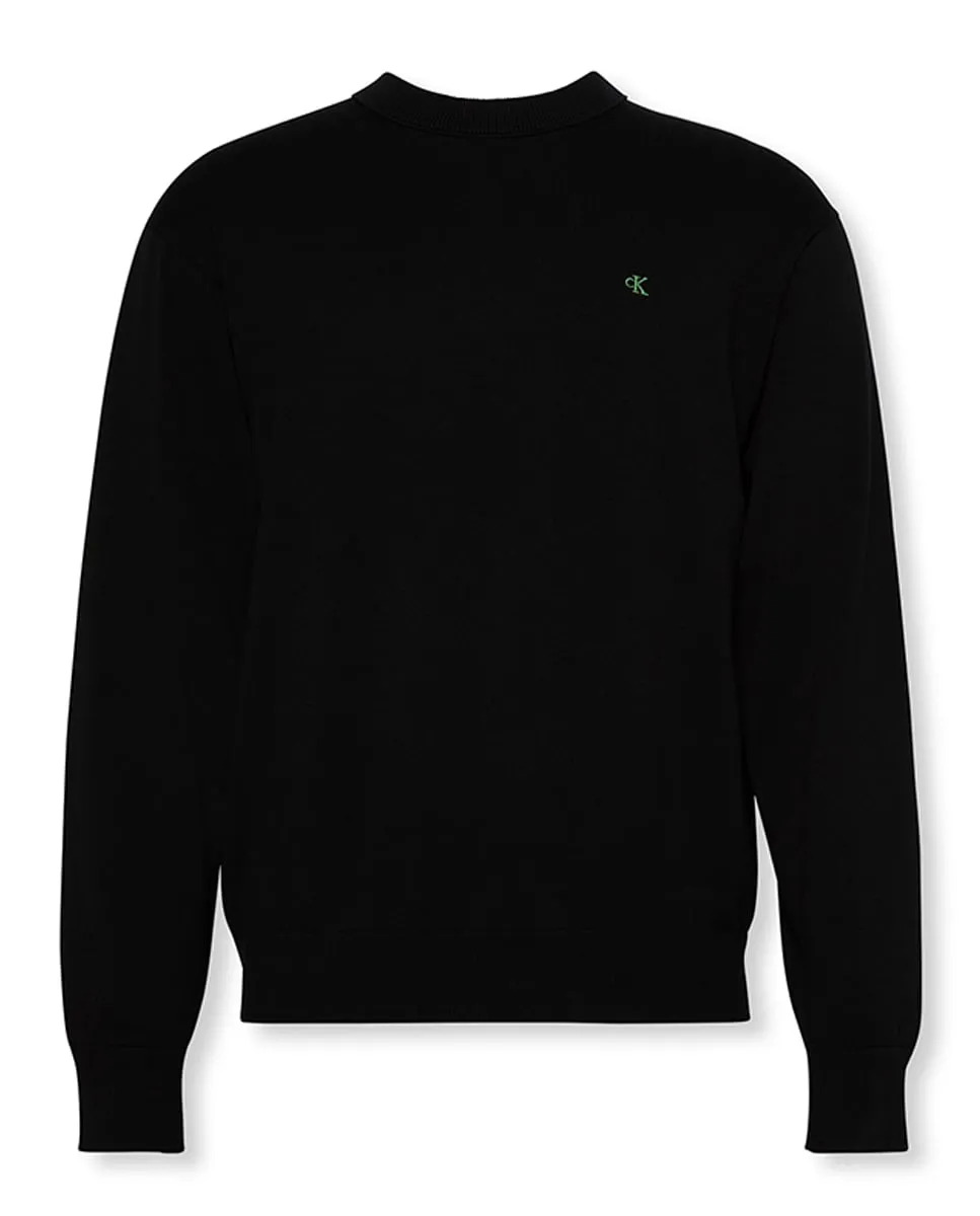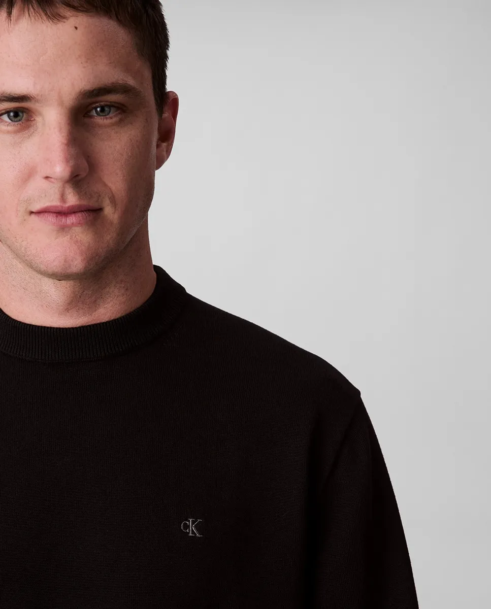 Мужской свитер свободного кроя, выполненный из 100% экологичного хлопка, с монограммой CK на груди.