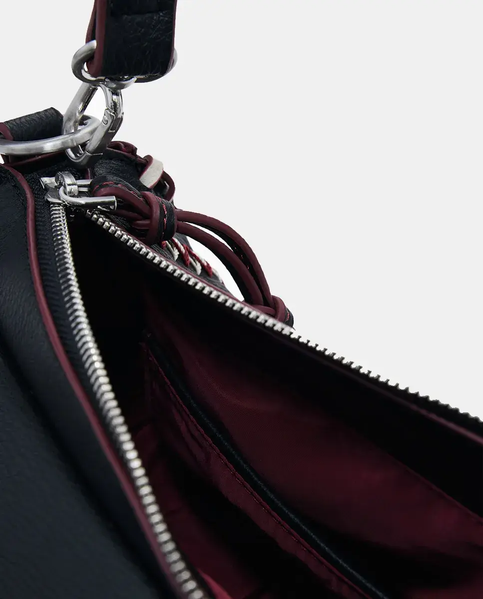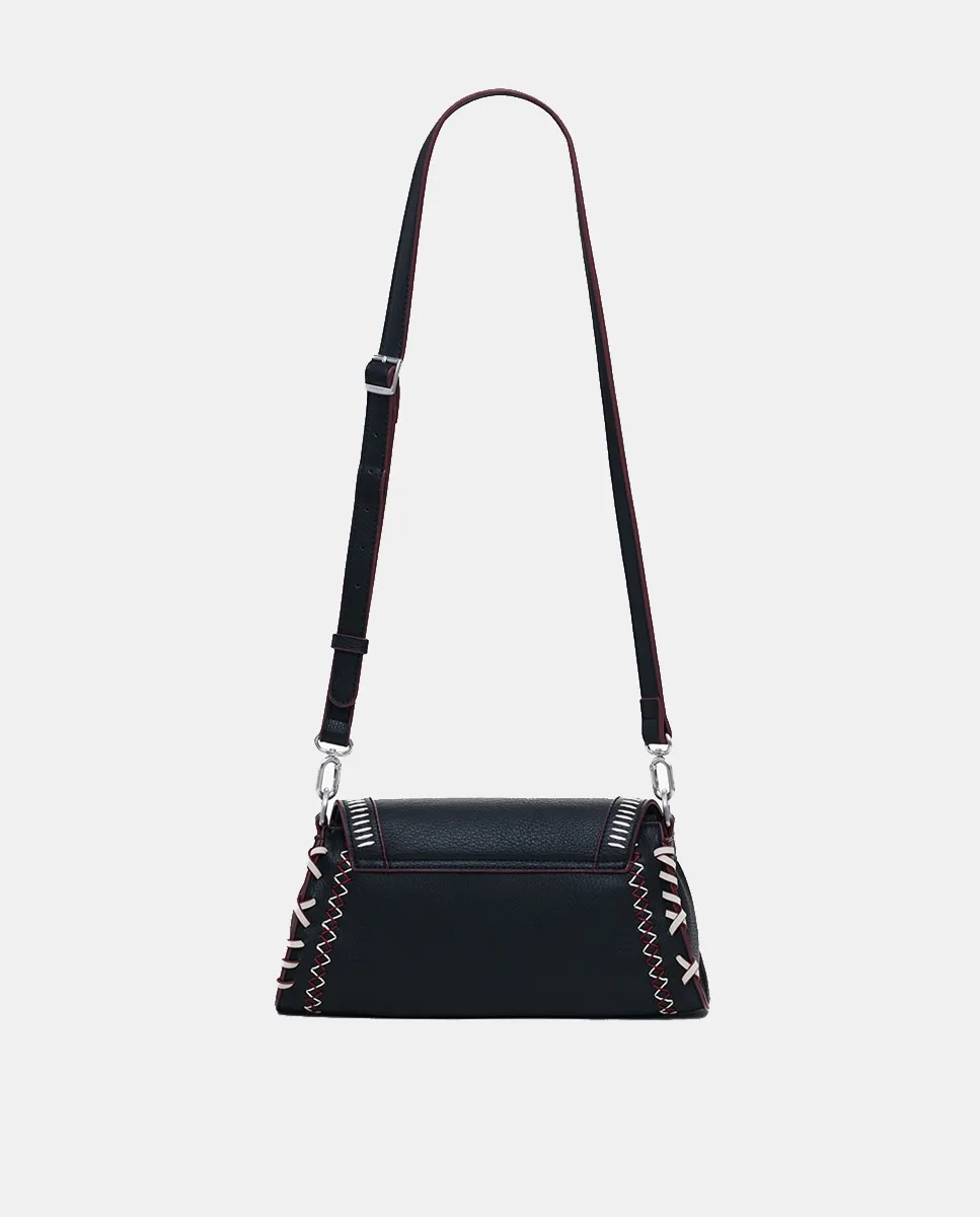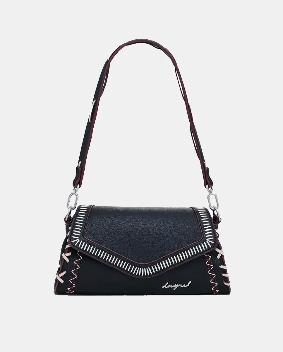Сумка через плечо в стиле «бандольера» из ткани с эффектом кожи, с декоративной прострочкой, клапаном с застежкой-молнией и сменными ручками.