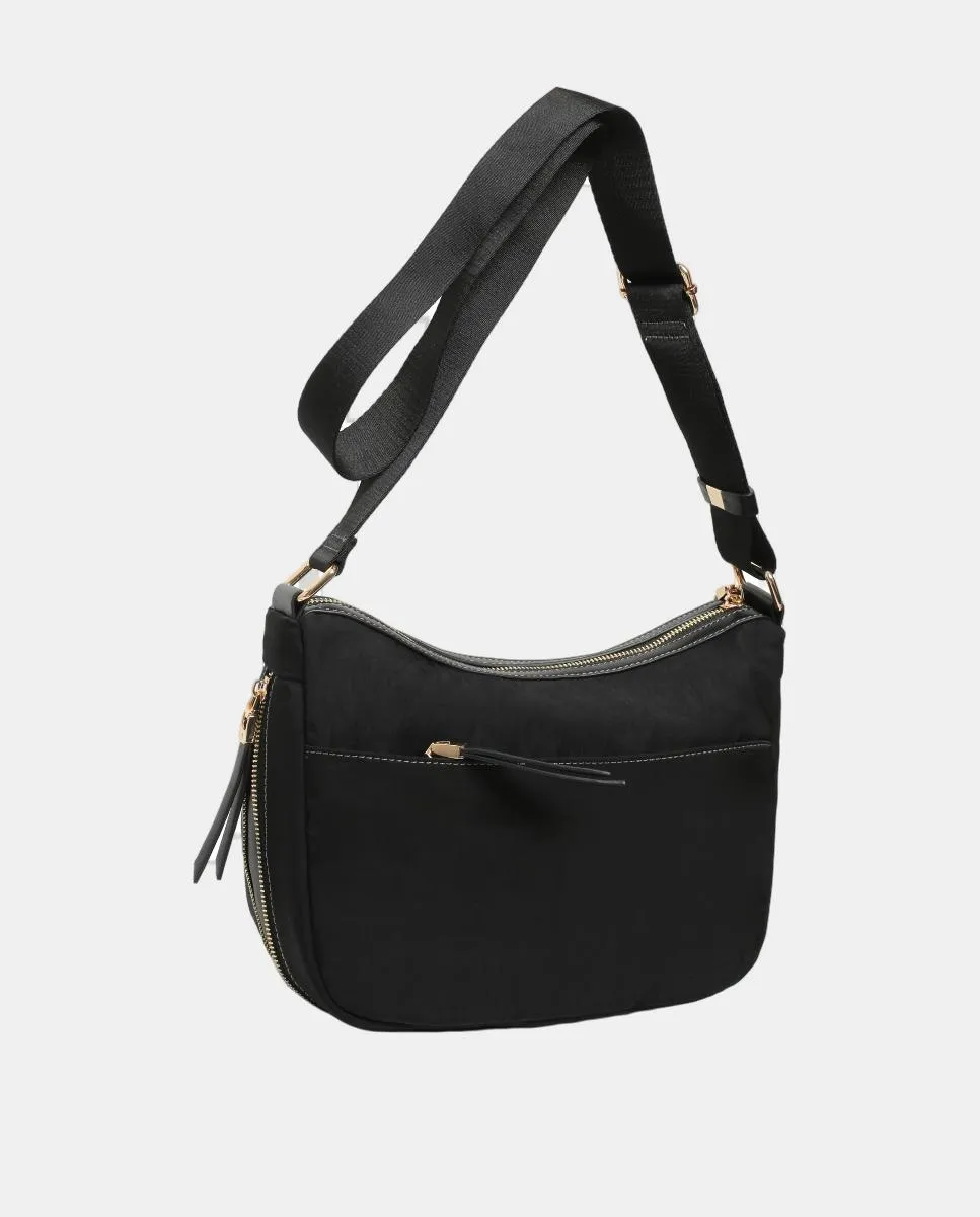 Сумка-хобо через плечо из нейлона черного цвета, с регулируемым плечевым ремнем для ношения на плече и через плечо, застежка-молния, 2 внутренних кармана и 2 внешних кармана.