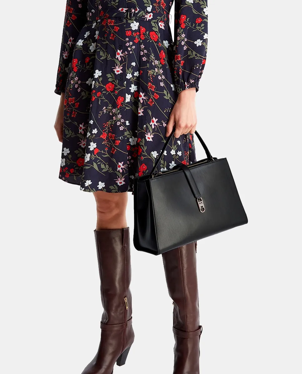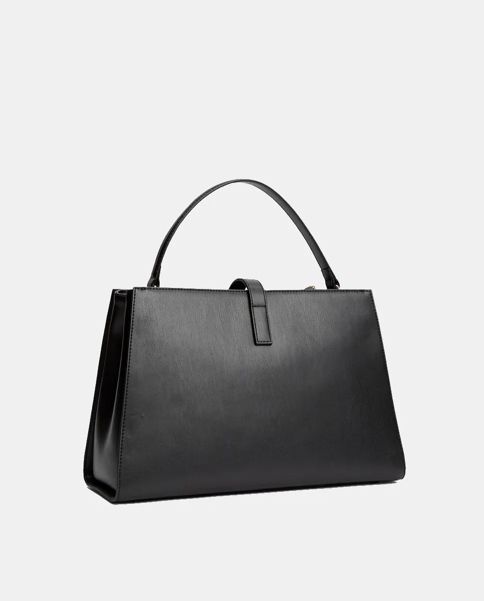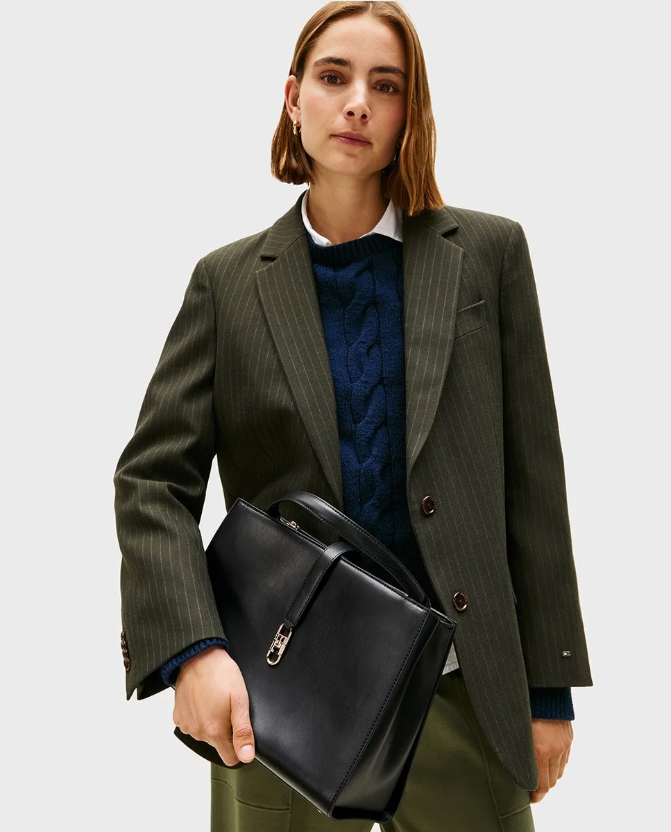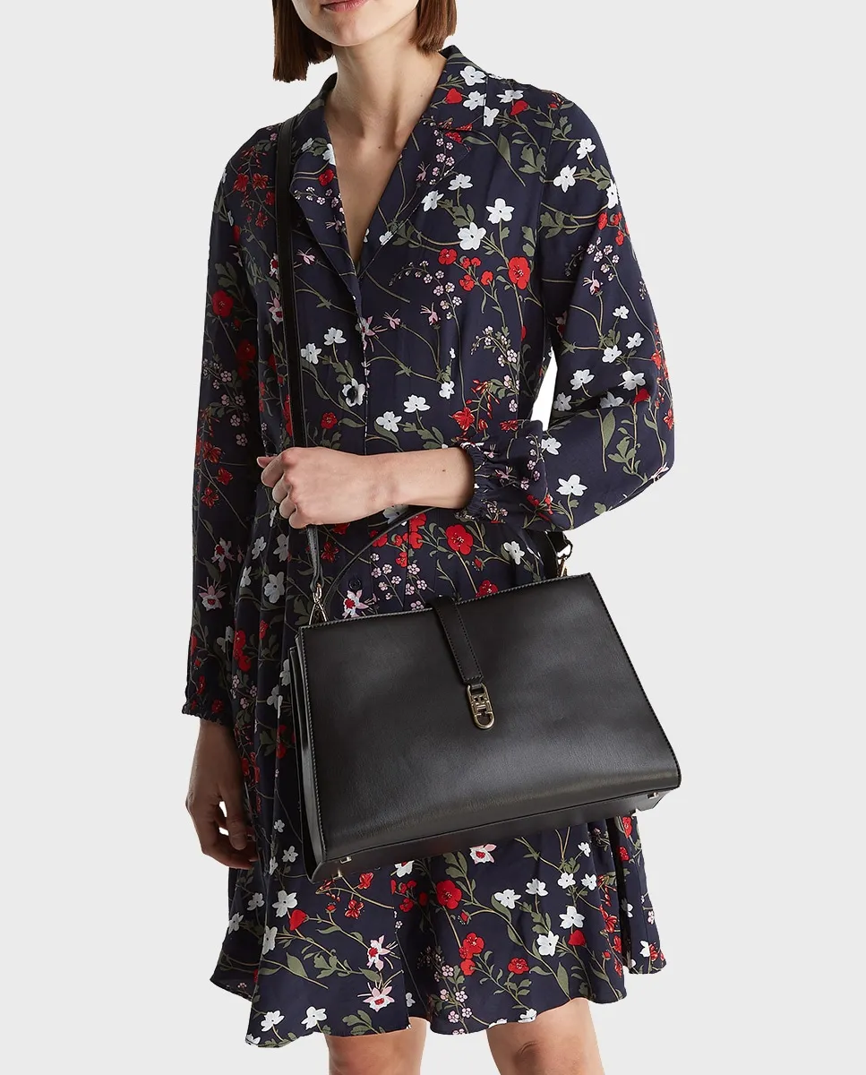 Женская сумка в стиле «сэтчел», выполненная из экокожи черного цвета. Дизайн с ручкой и регулируемым плечевым ремнем. Деталь с логотипом Tommy Hilfiger на застежке.