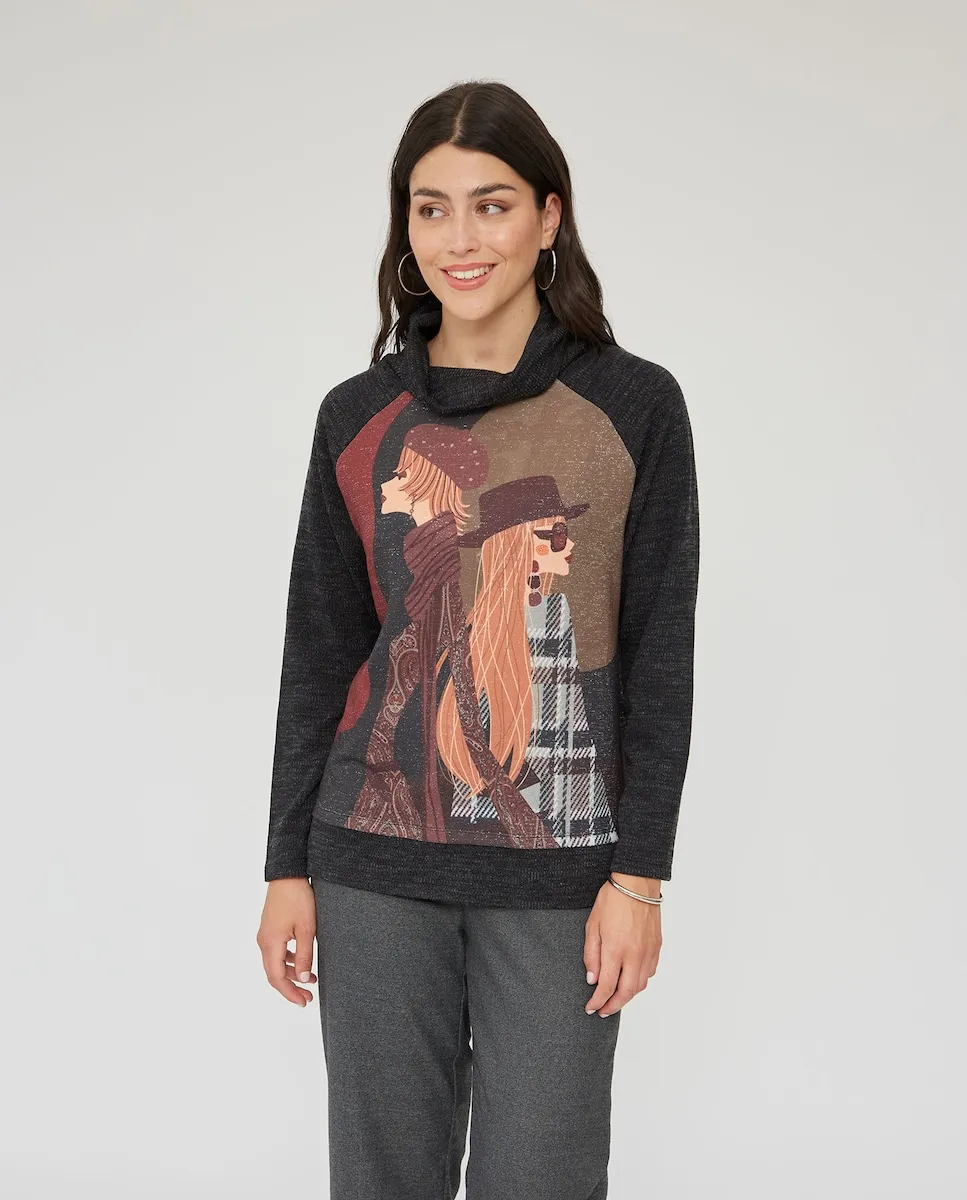 Женский свитер с высоким воротом с принтом девушки October, черный