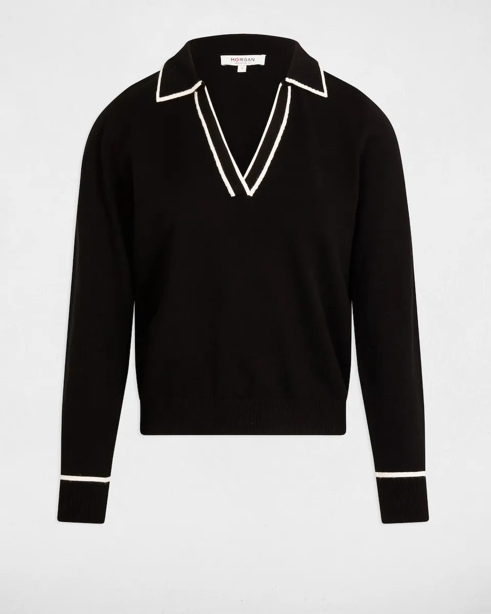 Женский свитер с воротником-поло Morgan, черный