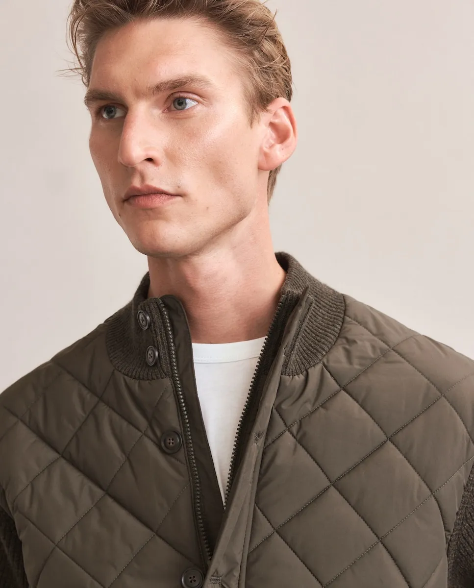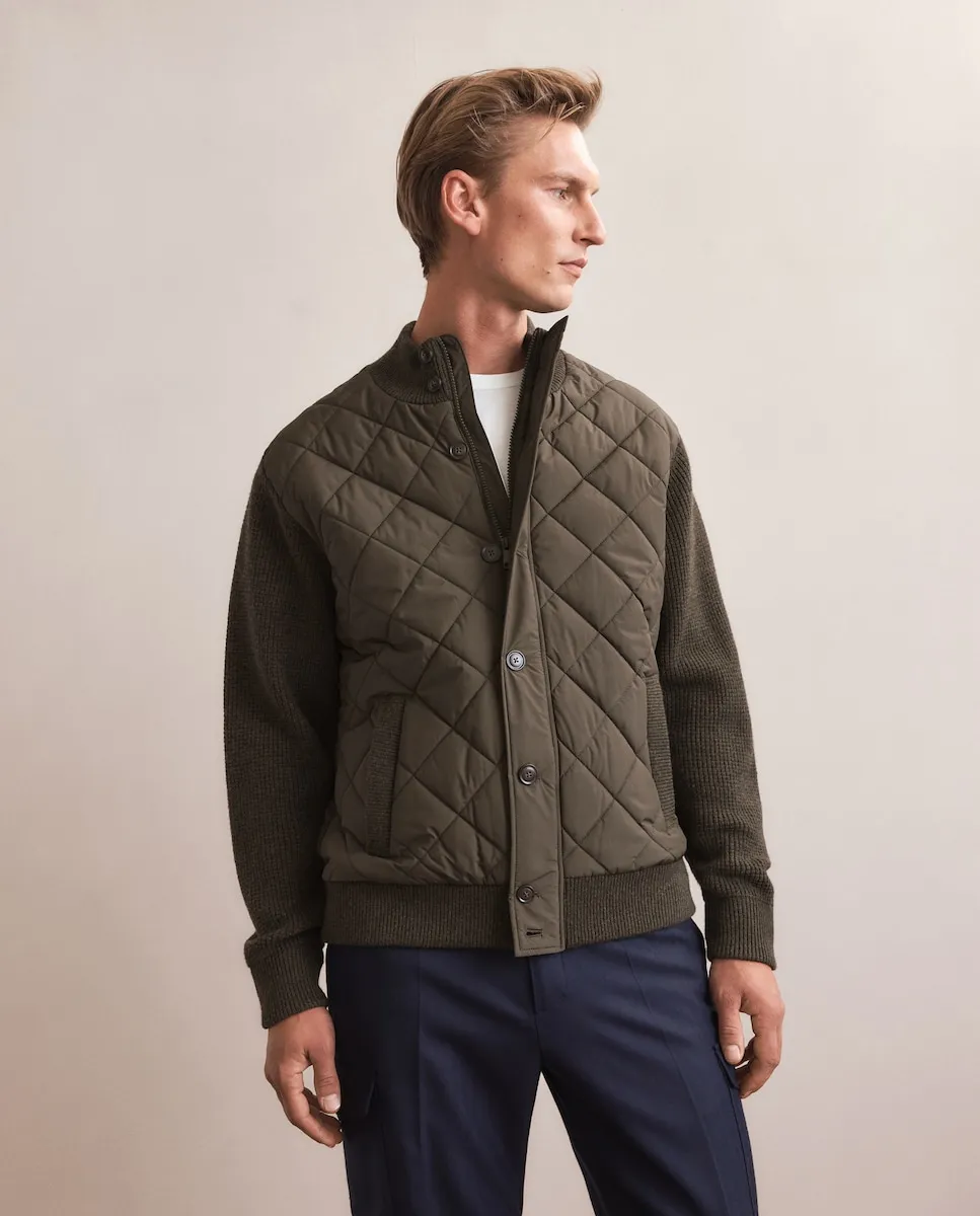 Мужской кардиган с молнией и пуговицами, полуводолазный воротник с 2 карманами, перед из нейлона и рукава и спинка из 100% шерстяного трикотажа