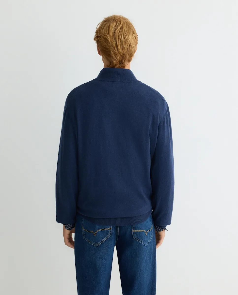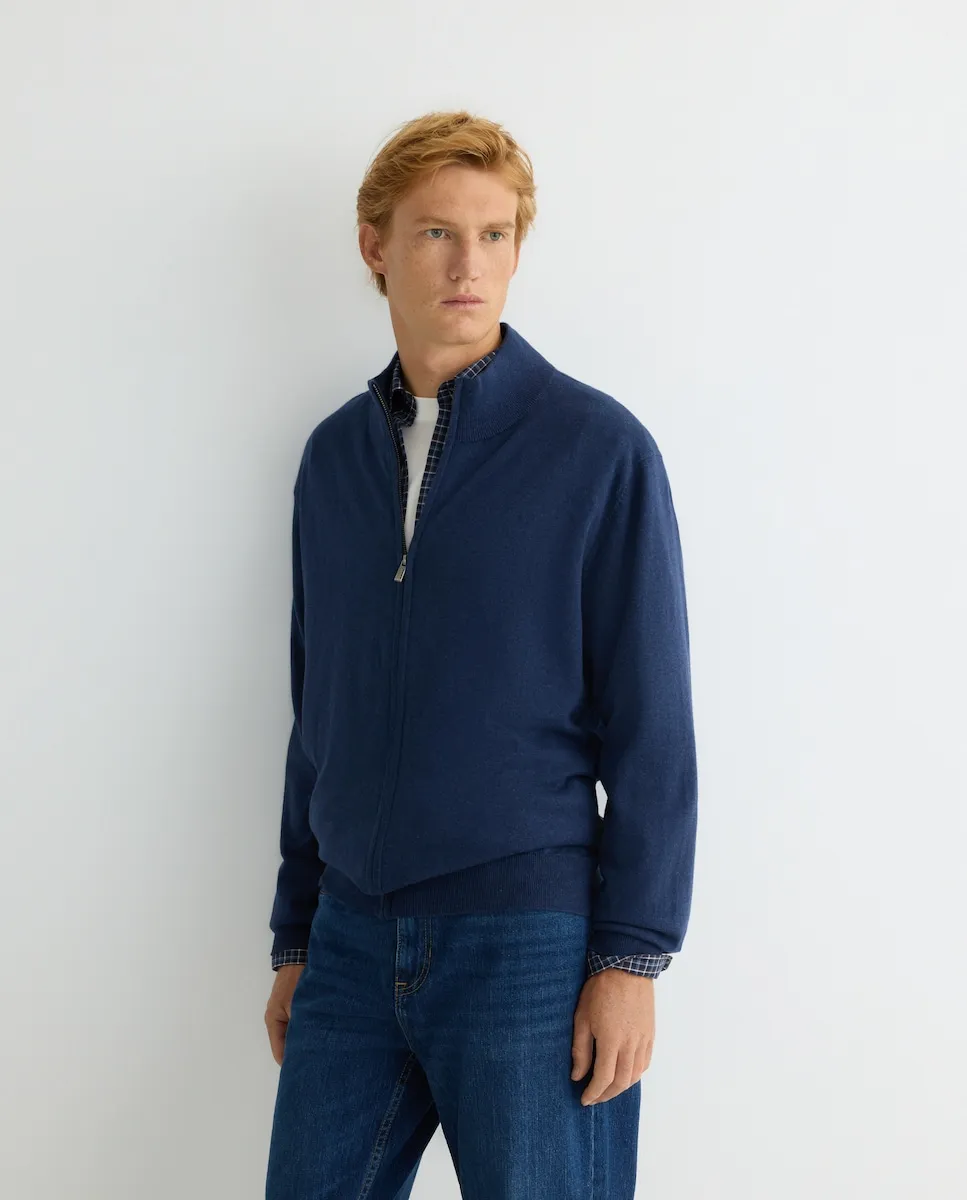 Кардиган на молнии, прямой крой, хлопок с кашемиром, однотонный, кобальтовый.