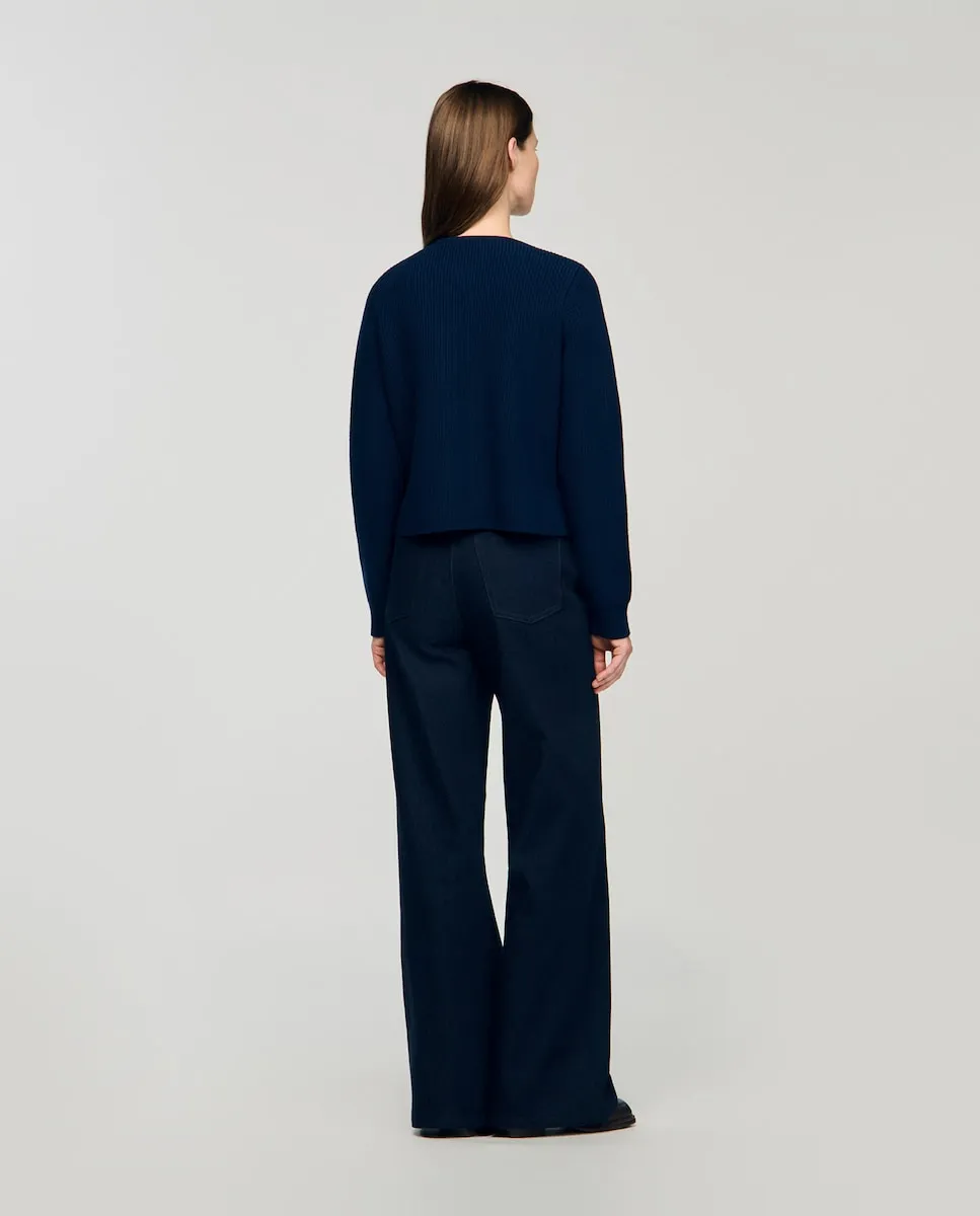 Женский кардиган с джинсовыми деталями Sandro, темно-синий 28 610₽