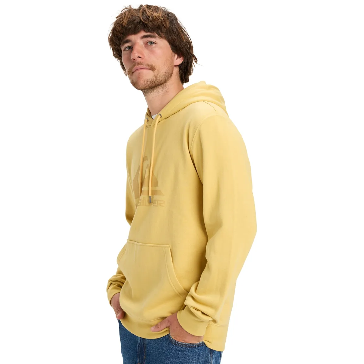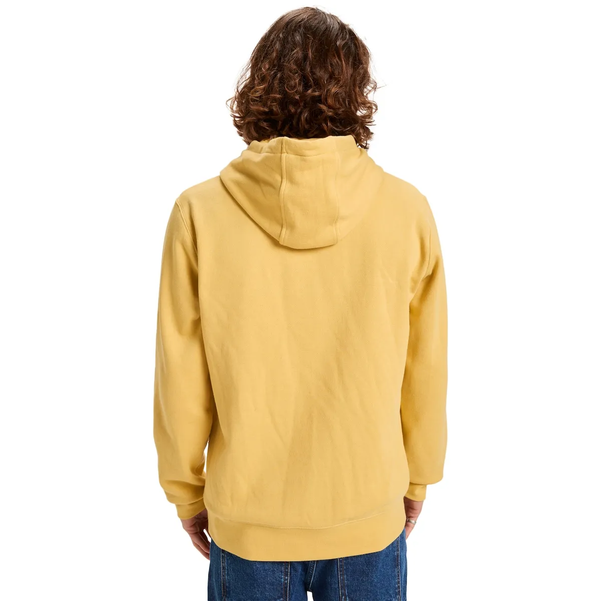 Мужская толстовка с капюшоном. Особенности включают: Материал: 60% хлопок, 40% полиэстер, 280 г/м², Отделка: щетинистая, Крой: обычный, Карманы: карман-кенгуру, Манжеты и подол в рубчик, Капюшон с шнурком, Детали: принт на передней части и набор переработанных бирок Quiksilver.