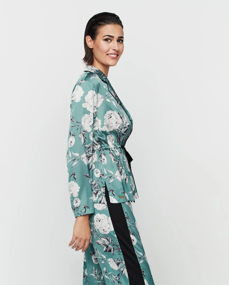 Длинная женская пижама-комплект из двух предметов. С регулируемой сборкой на талии. С цветочным принтом. Элегантная и утонченная вещь. Коллекция Malitzia, к которой она принадлежит, представляет собой идеальный танец между нежным и смелым. Соответствует размеру 38-40.
