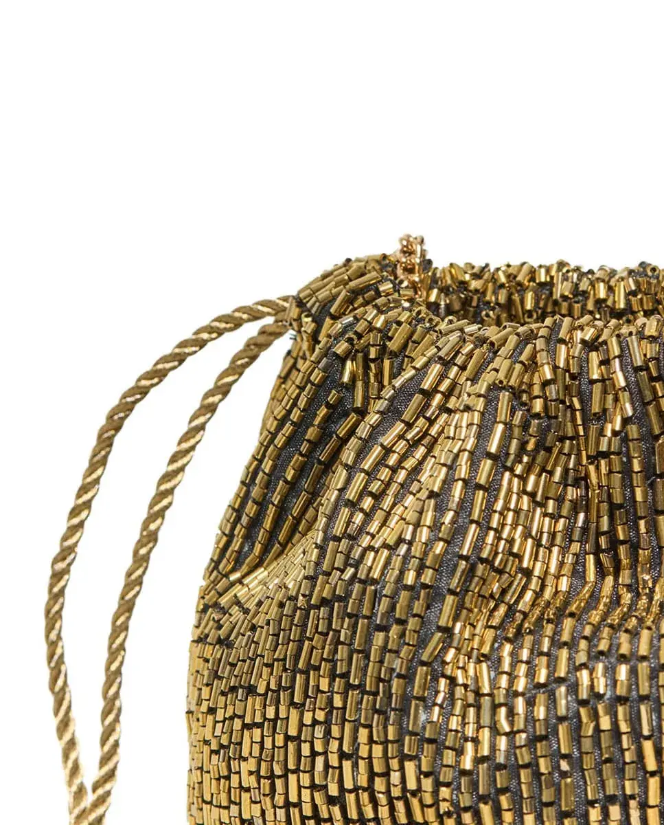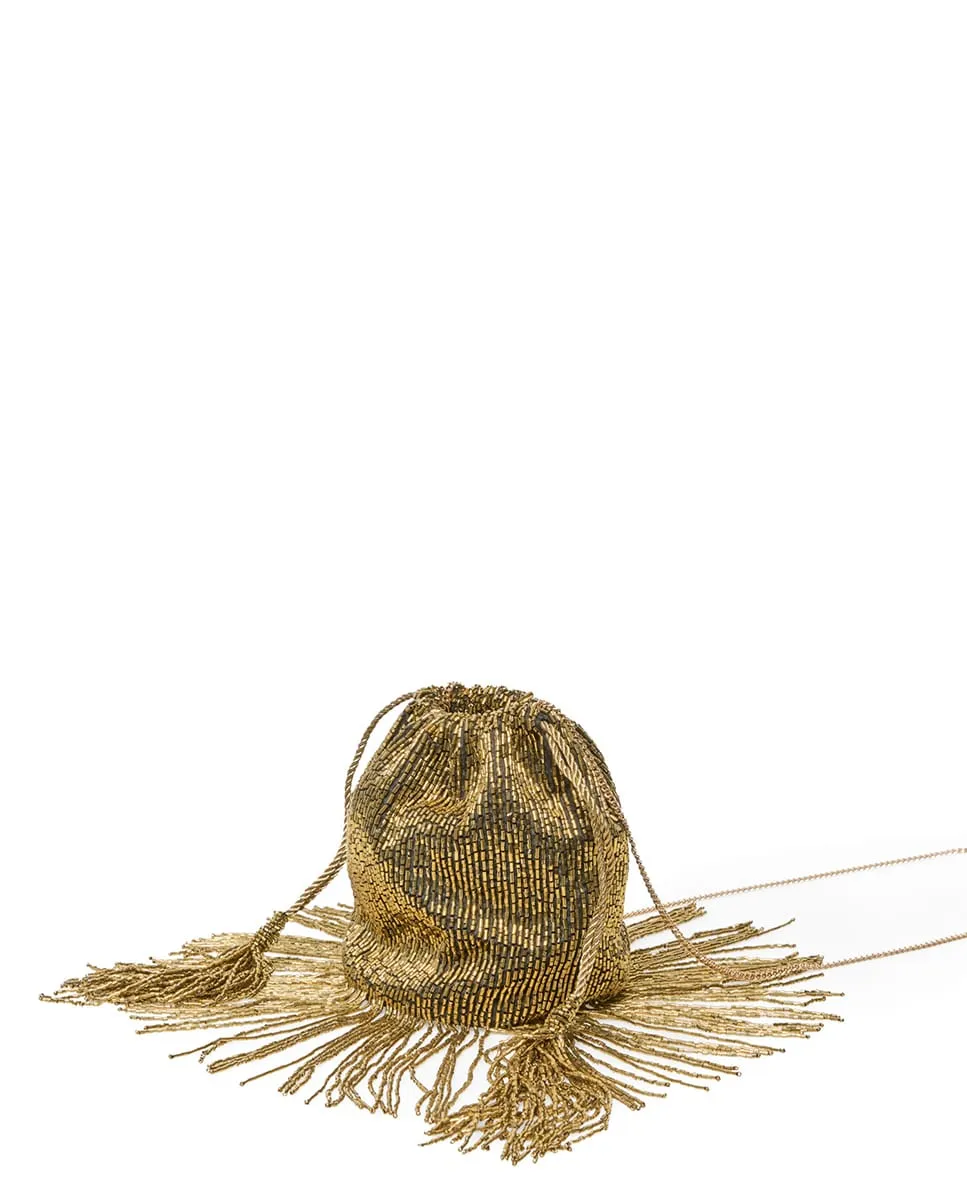 Клатч бусины бахрома Sfera, золотой