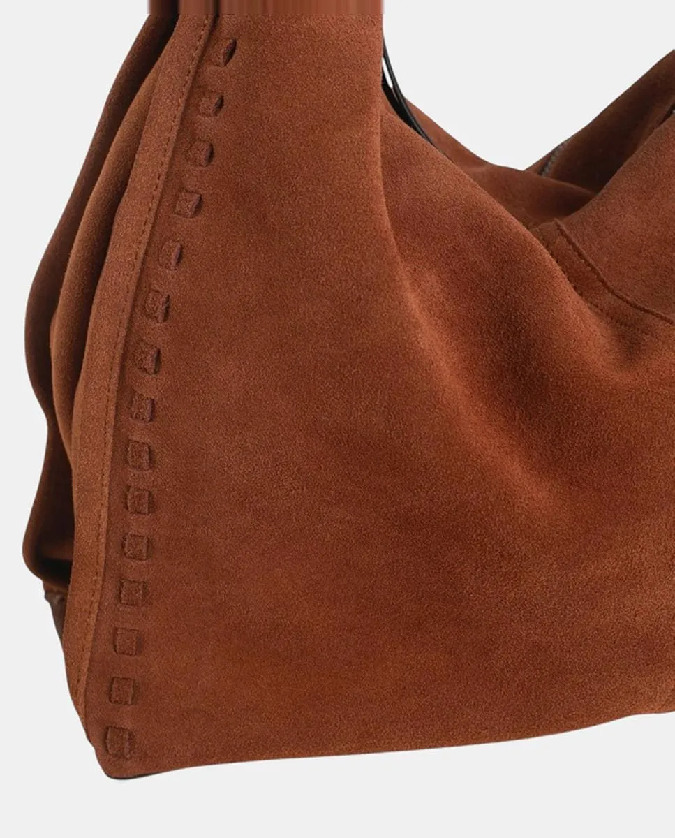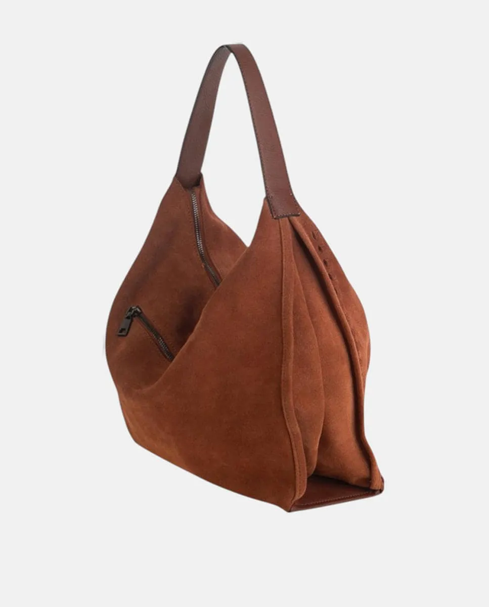 Сумка-хобо из спилка на молнии Volum, коричневый