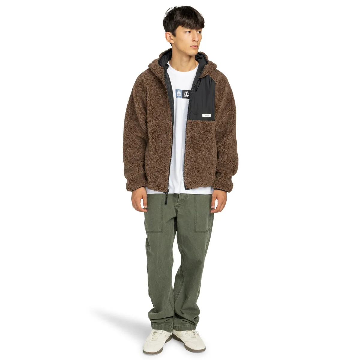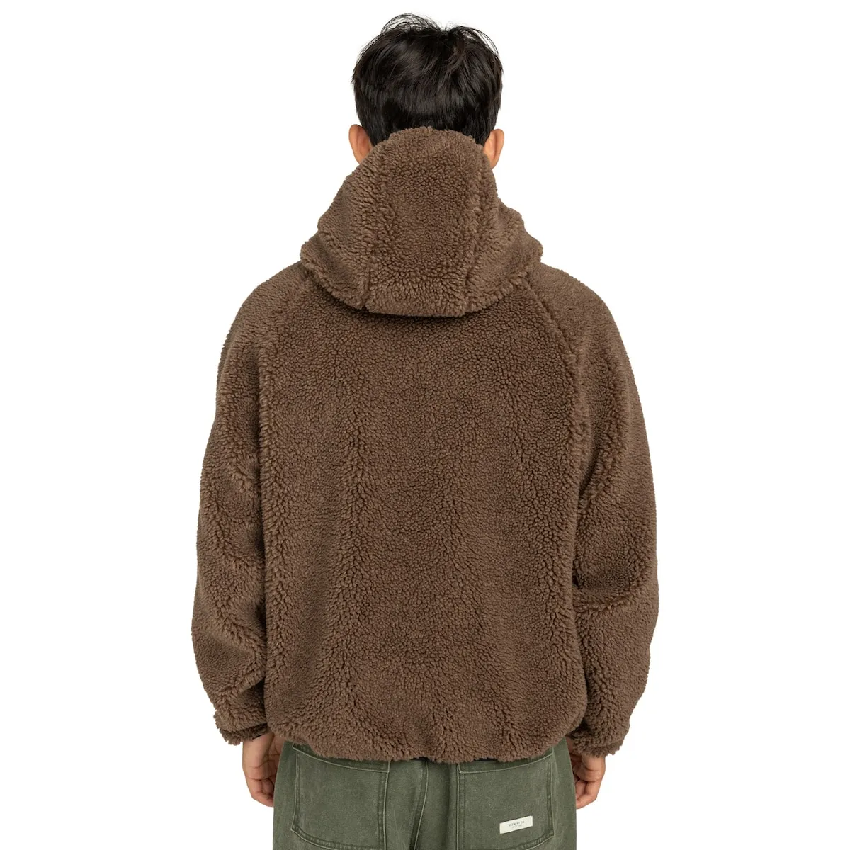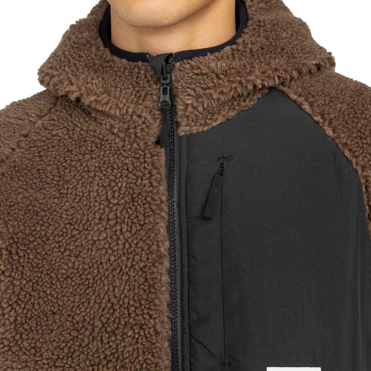 Мужской двухсторонний худи с капюшоном. Характеристики включают: Conscious by Nature: переработанный полиэстер, Ткань: переработанный полиэстер, Шерпа-флис, Плотность ткани: 380 г/м², Крой: свободный, Внутренняя ткань: внутренняя сетчатая ткань из полиэстера, Застежка: молния, Карманы: два прорезных кармана спереди, сторона шерпа с нагрудным карманом на молнии, нейлоновая сторона с накладным карманом, Капюшон: капюшон с окантовкой из лайкры и лейбл на боковине.