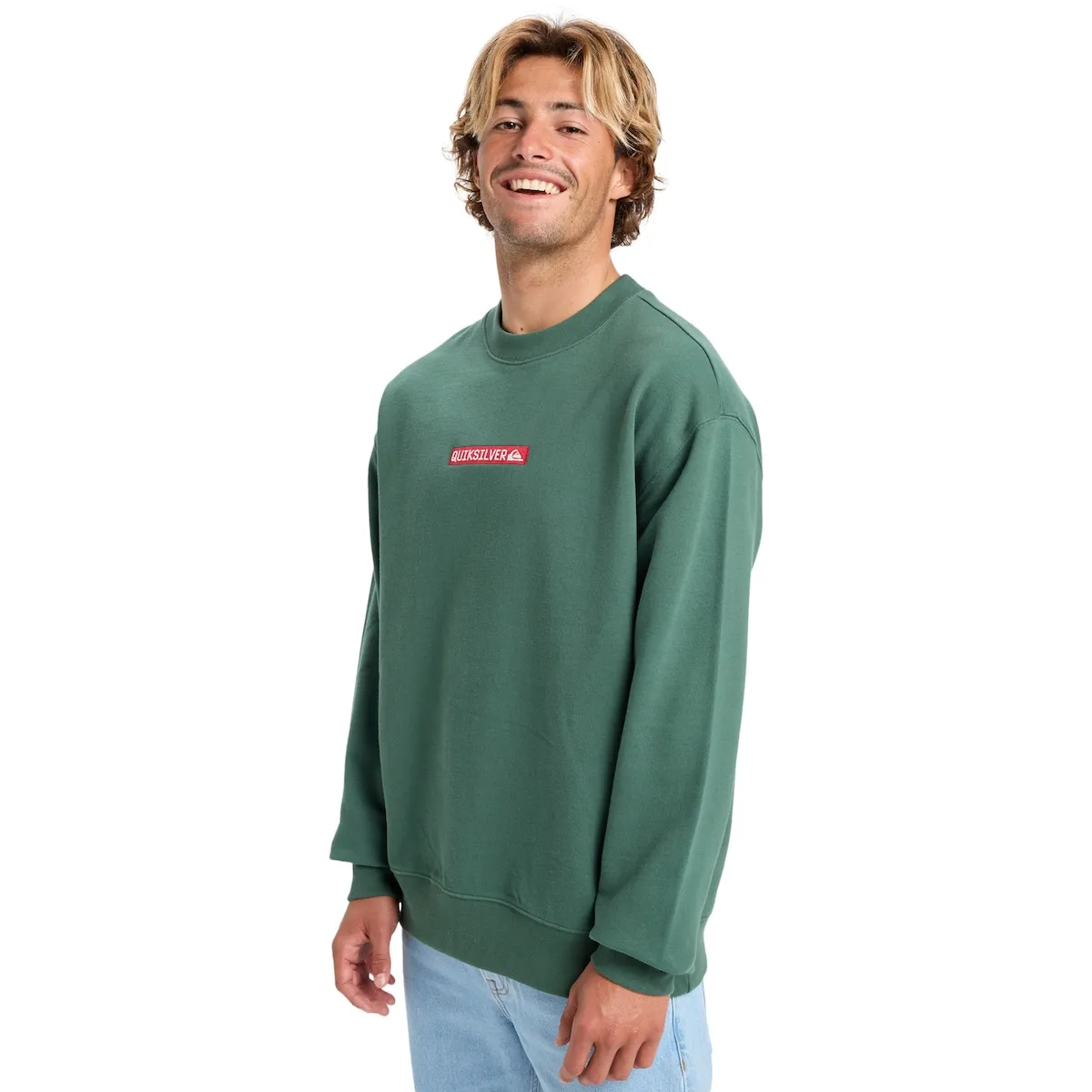 Толстовка для мужчин. Особенности включают: Материал: смесовый хлопок из переработанных тканей, 370 г/м², Отделка: внутренняя часть с начесом, Крой: очень свободный, Резинка 1x1 на манжетах и низе, Детали: художественные детали на груди и набор переработанных этикеток Quiksilver.
