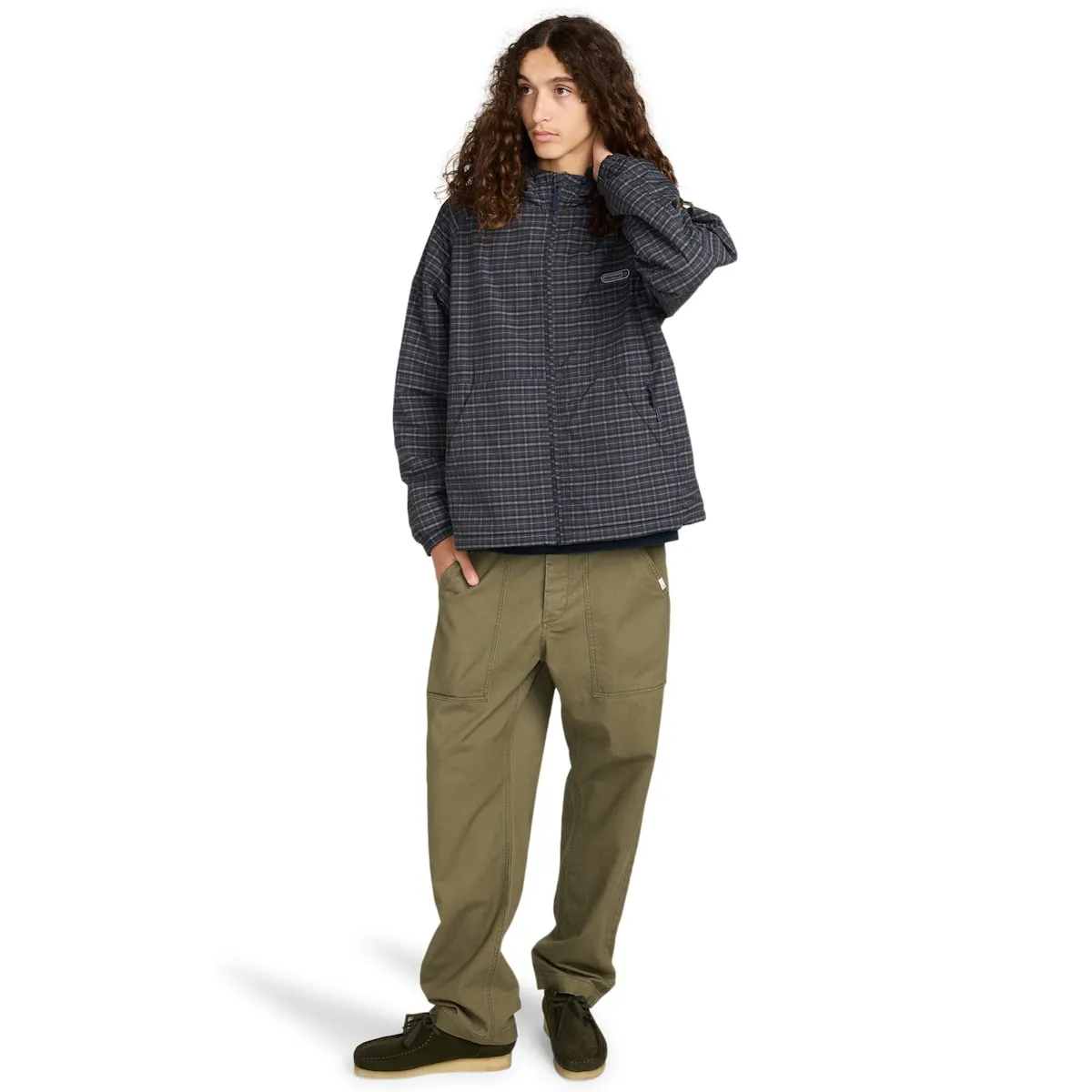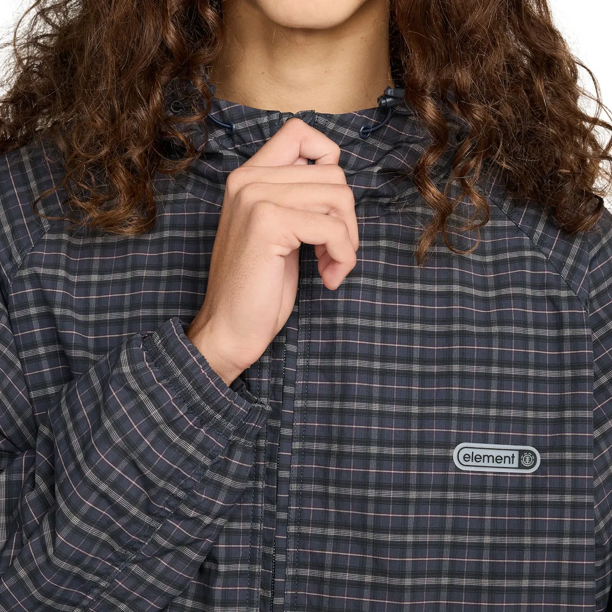 Ветровка для мужчин. Характеристики включают: Обработка ткани: DWR без PFC, Осознанный выбор: переработанный нейлон, Ткань: переработанный нейлон, рипстоп, Плотность ткани: 121 г/м², Крой: свободный, Подкладка: флисовая подкладка из полиэстера, Застежка: молния, Карманы: карман-кенгуру, скрытый карман на молнии сверху, Капюшон: капюшон с козырьком и регулируемая шнуровка, Силиконовый патч на груди.