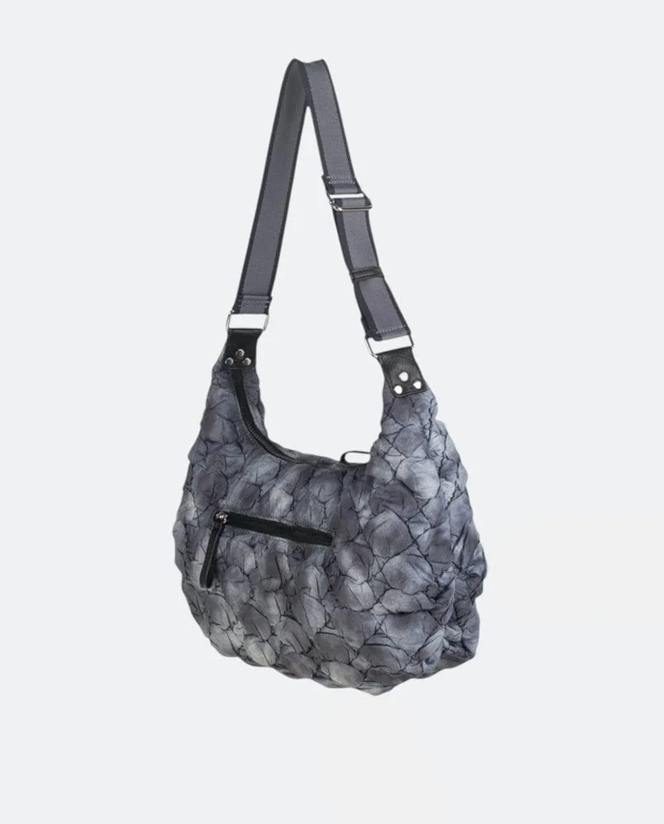 Сумка-хобо из жатого нейлона на молнии Kbas, серый
