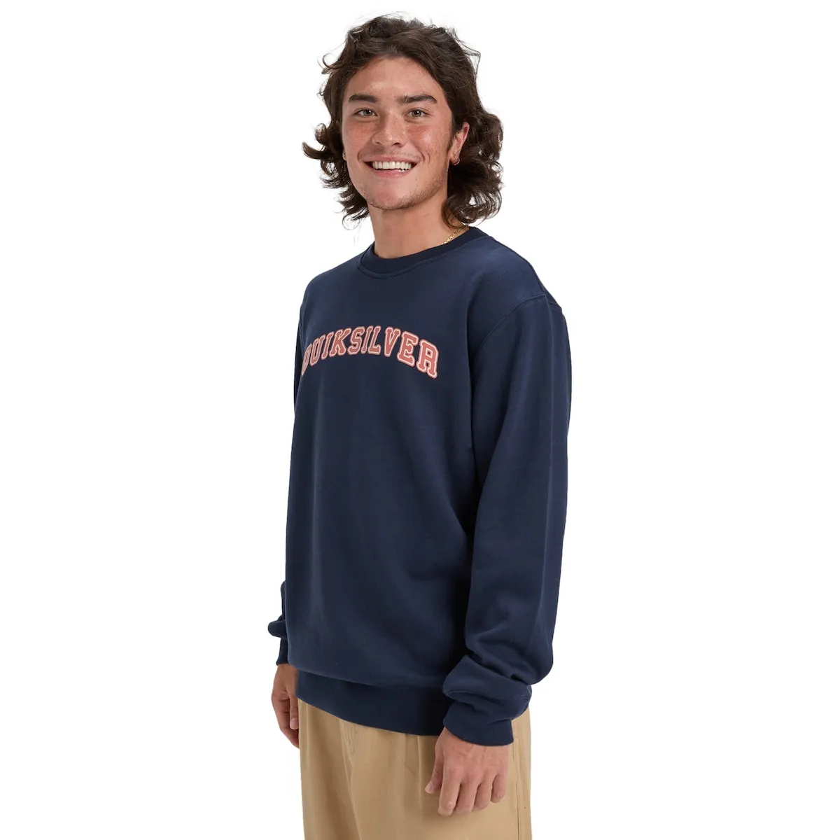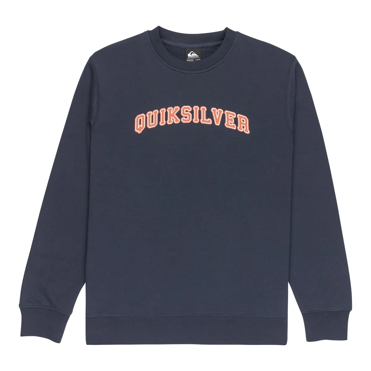 Мужская толстовка. Характеристики включают: Ткань: хлопок, полиэстер, 280 г/м², Отделка: начес, Крой: обычный, Рифленый воротник, манжеты и низ изделия, Детали: художественные элементы на груди и комплект переработанных бирок Quiksilver.