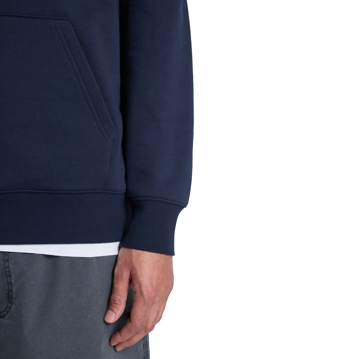 Мужская толстовка с капюшоном. Особенности включают: Материал: 60% хлопок, 40% полиэстер, 280 г/м², Отделка: щетинистая, Крой: обычный, Карманы: карман-кенгуру, Манжеты и подол в рубчик, Капюшон с шнурком, Детали: принт на передней части и набор переработанных бирок Quiksilver.