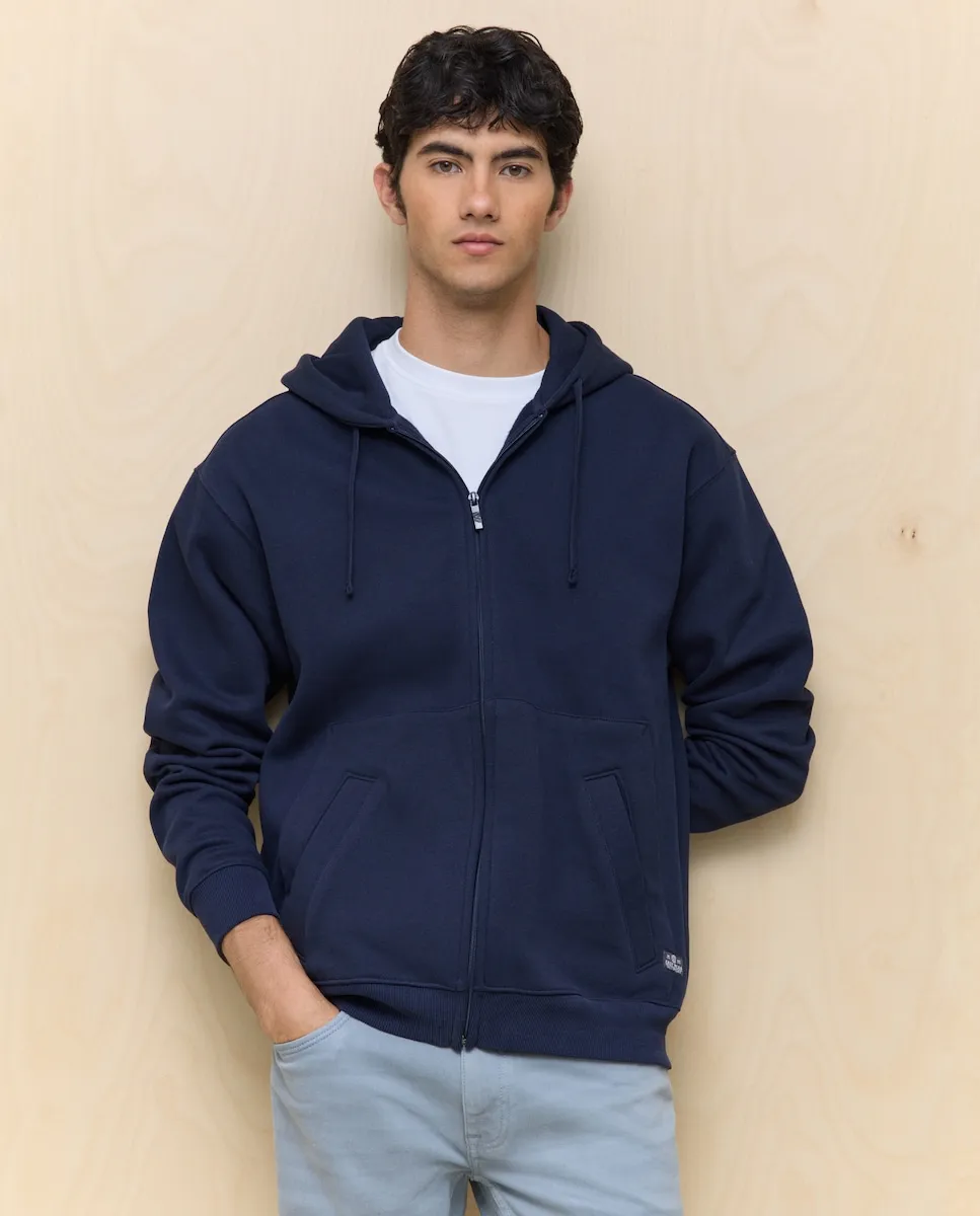 Мужская худи с капюшоном и молнией. Свободный крой. Имеет карманы спереди. Однотонного цвета, из тяжелого флиса.