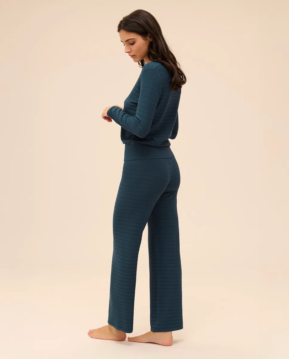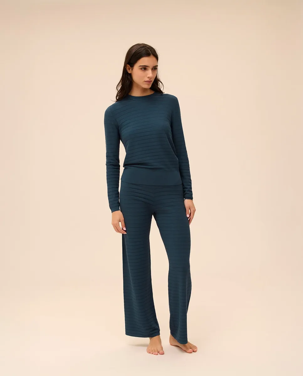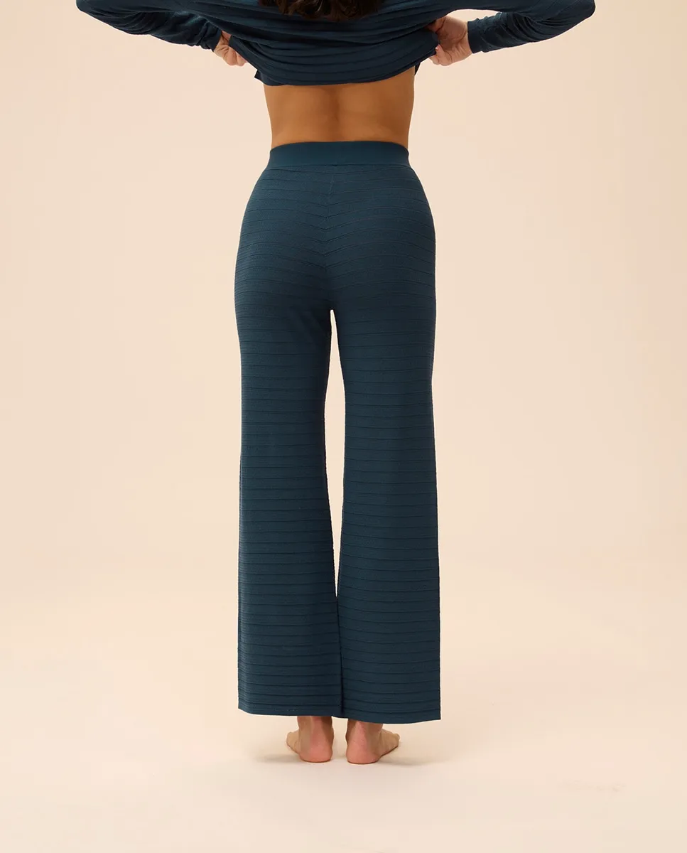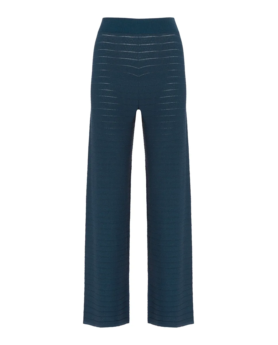 Вязаные брюки из вискозы LENZING ECOVERO. Красивые вязаные узоры. Прямой крой. Мы заботимся: Эта вещь является частью нашей программы SIMONE CARES, выполнена из основного материала в виде трикотажа из вискозы LENZING ECOVERO. Волокна LENZING ECOVERO получены из устойчивых древесных источников, сертифицированных по экологической европейской маркировке, из производственного процесса с ограничением выбросов CO2 и потребления воды.