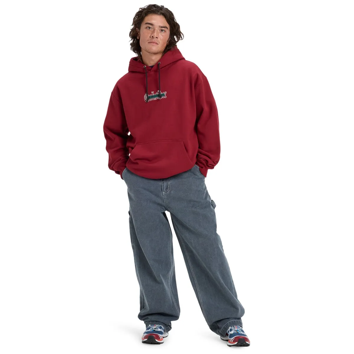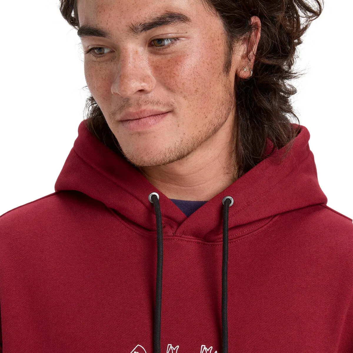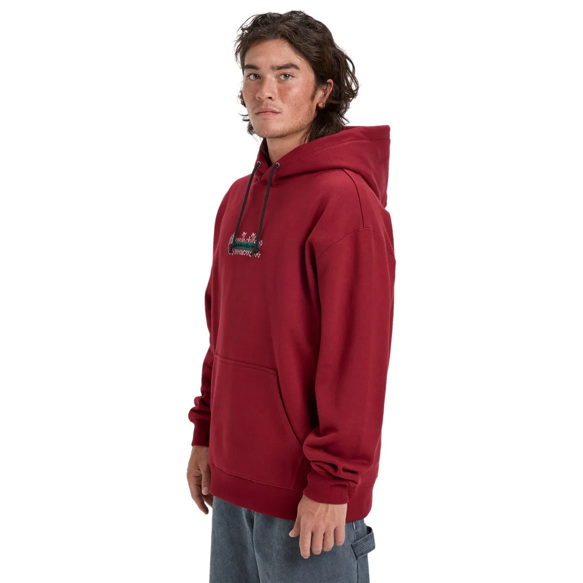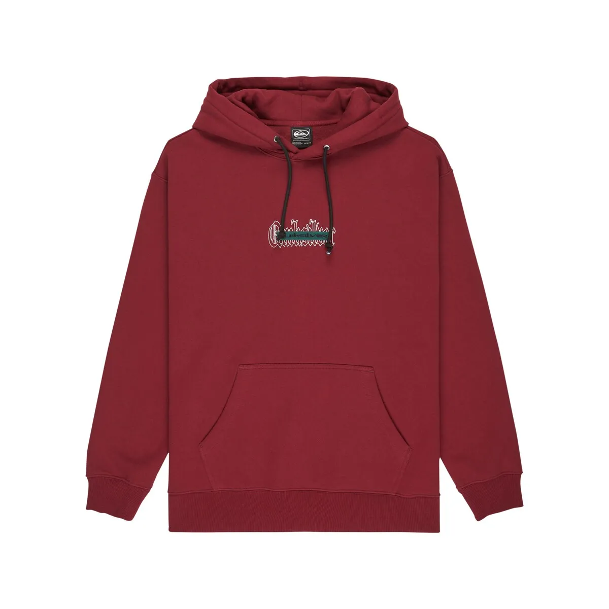 Мужская худи с капюшоном. Особенности включают: Ткань: флис из переработанного хлопка, обычный хлопок и переработанный полиэстер с ворсированной изнанкой [400 г/м²], Крой: свободный крой, Воротник: откидной капюшон, регулируемый шнурок на капюшоне, Карманы-кенгуру, Силкография с мягкой текстурой с художественной вышивкой прямо по центру передней части и Детали: ярлык Quiksilver на боковом шве.