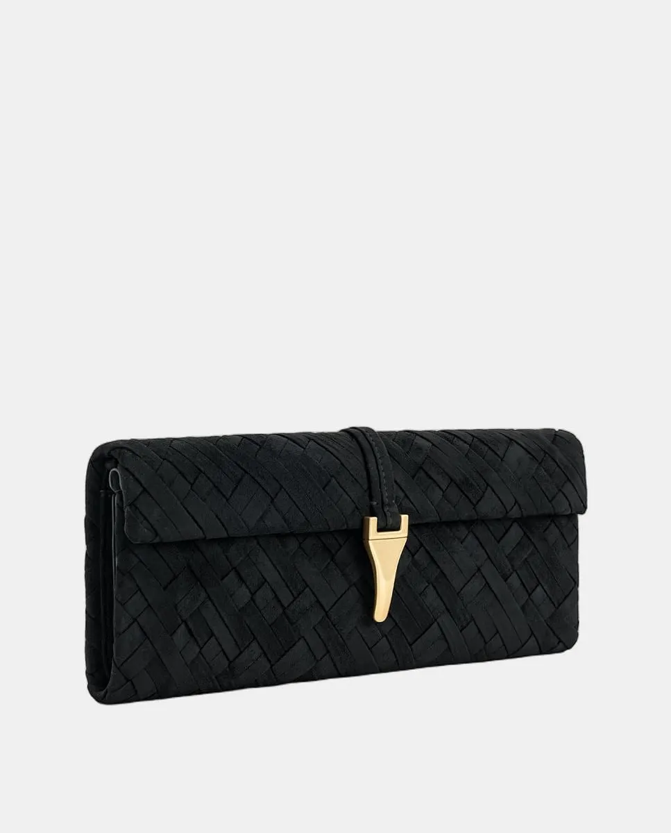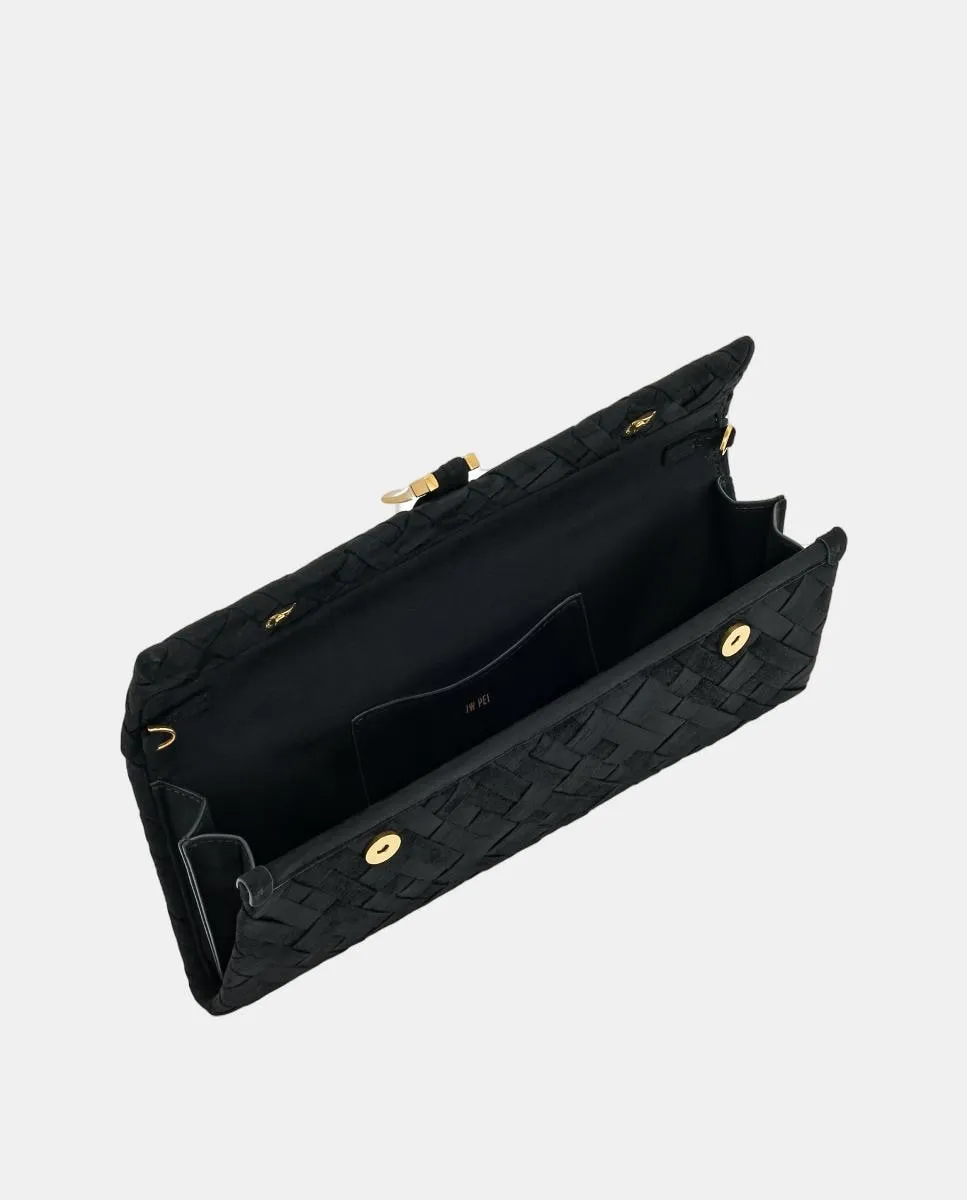 Это элегантная и изысканная черная сумка, изготовленная из высококачественной веганской кожи, с уникальным переплетенным дизайном. Ее компактная структура в виде клатча предлагает современный и функциональный способ носить все необходимое в порядке. Минималистичный черный дизайн делает эту сумку идеальной для любого случая, от официальных мероприятий до повседневных выходов. Сумка оснащена съемным ремнем, который позволяет носить ее на плече или как ручную сумку, обеспечивая универсальность и вечный стиль.