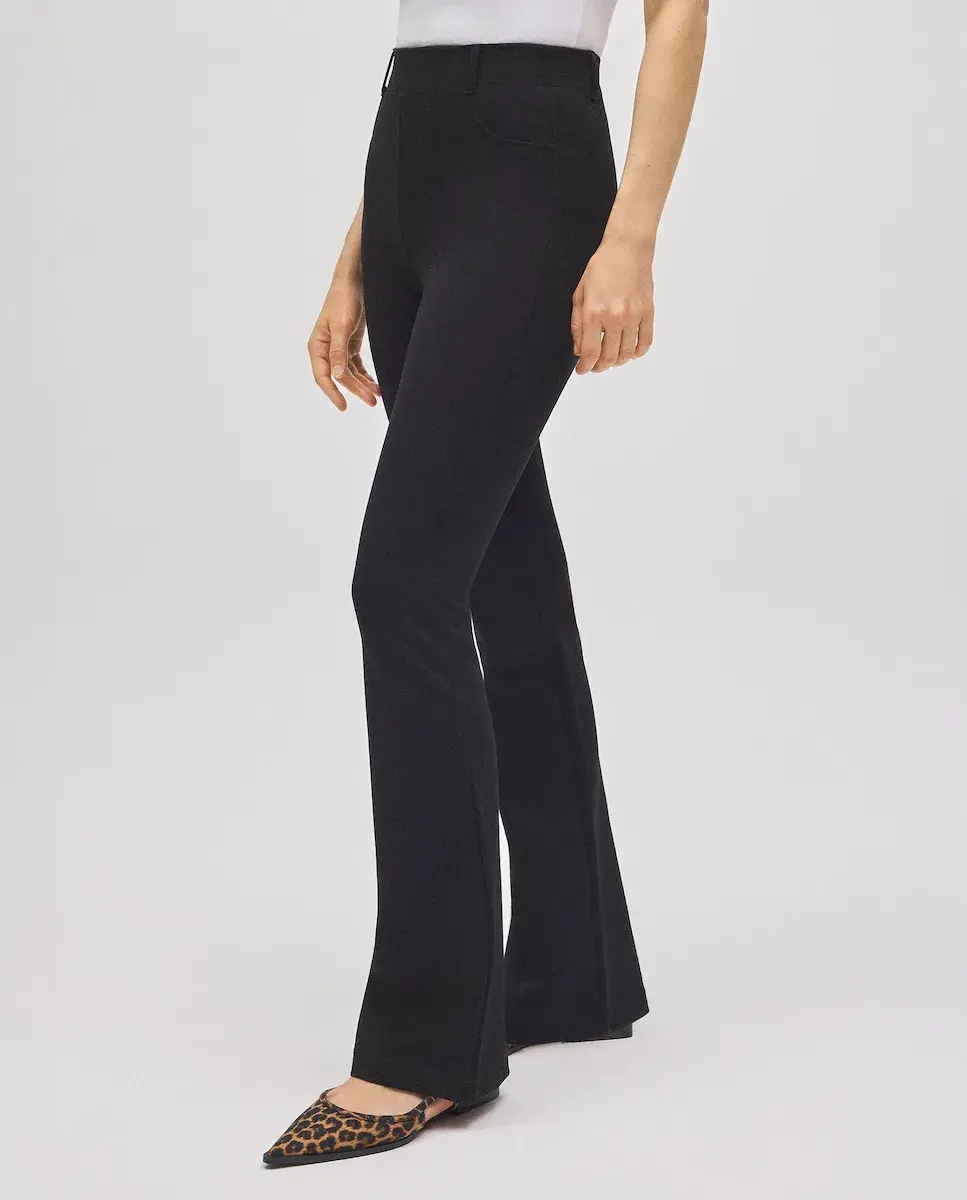Корректирующие брюки с расклешенным кроем, идеально подходят для придания фигуре стройности, не жертвуя комфортом. Незаменимая вещь в элегантном и функциональном ключе.Корректирующие брюки расклешенного кроя. Особенности:- Моделирующая и компрессионная ткань: обеспечивает плотную посадку, подчеркивая силуэт.- Эффект плоского живота: высокая талия поддерживает и корректирует область живота.- Расклешенный крой: штанины узкие на бедрах, расширяются от колена.- Черный цвет: подходит для любого случая, легко сочетается.- Универсальная вещь: идеально для офиса, повседневных планов или более нарядного образа.Состав: 65% вискоза, 30% полиамид, 5% эластан