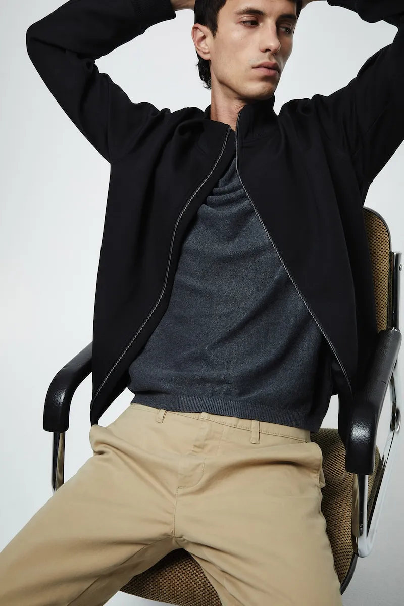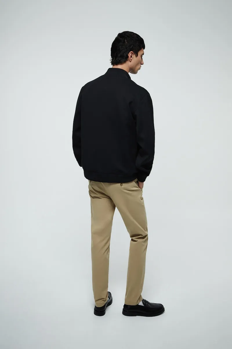 Прямые узкие чиносы с карманами. Застежка на пуговицу и молнию.