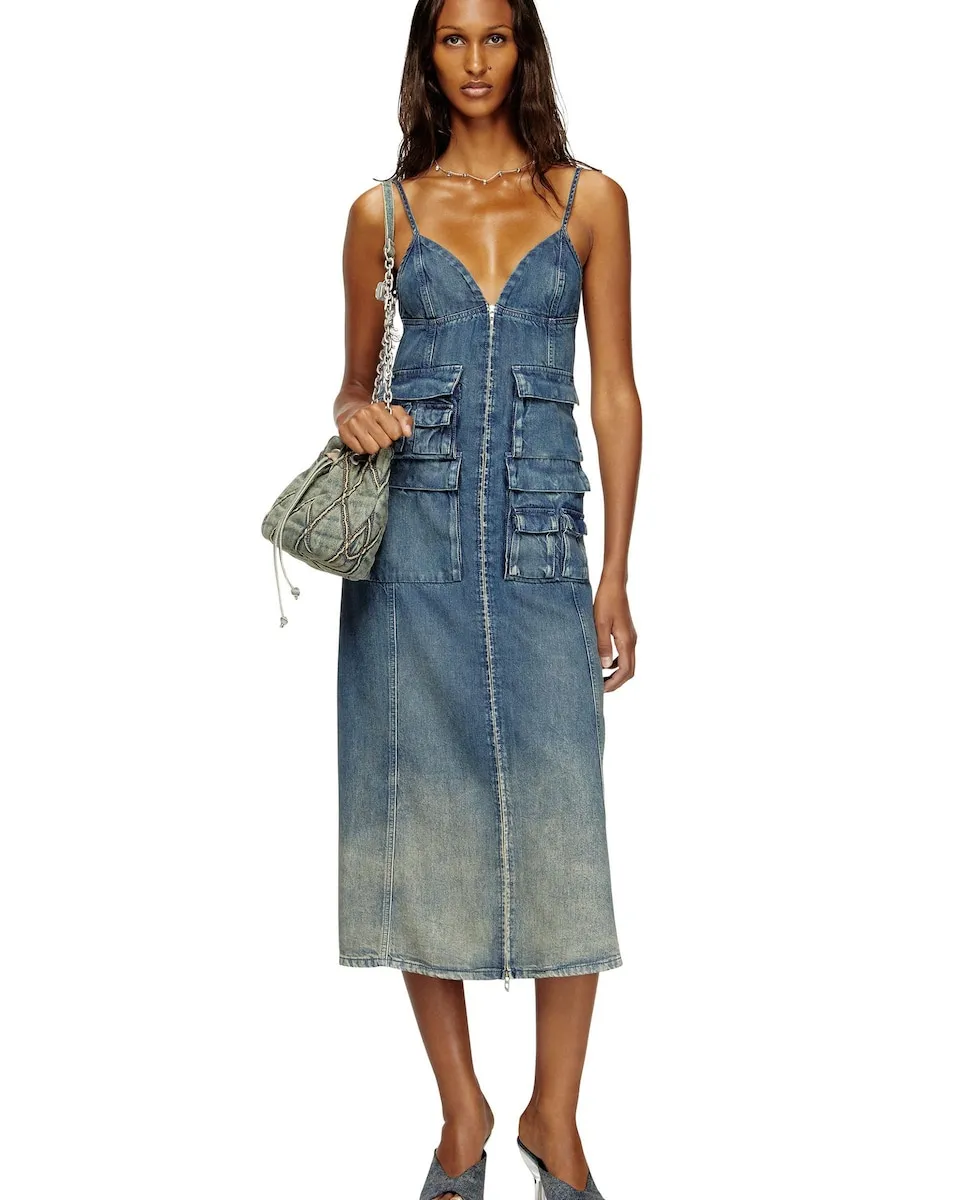 Джинсовое миди-платье DIESEL на бретелях Diesel, синий