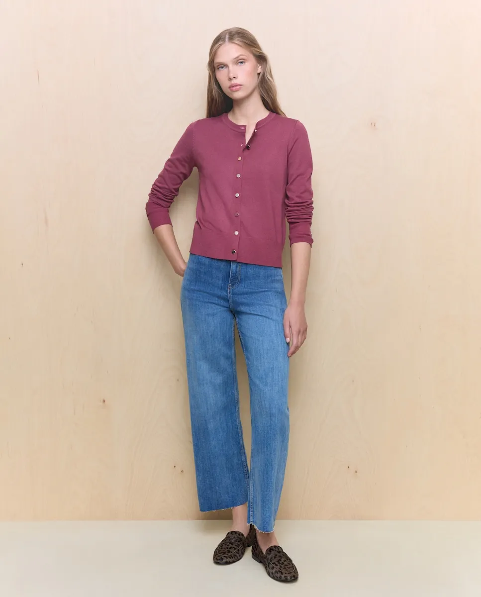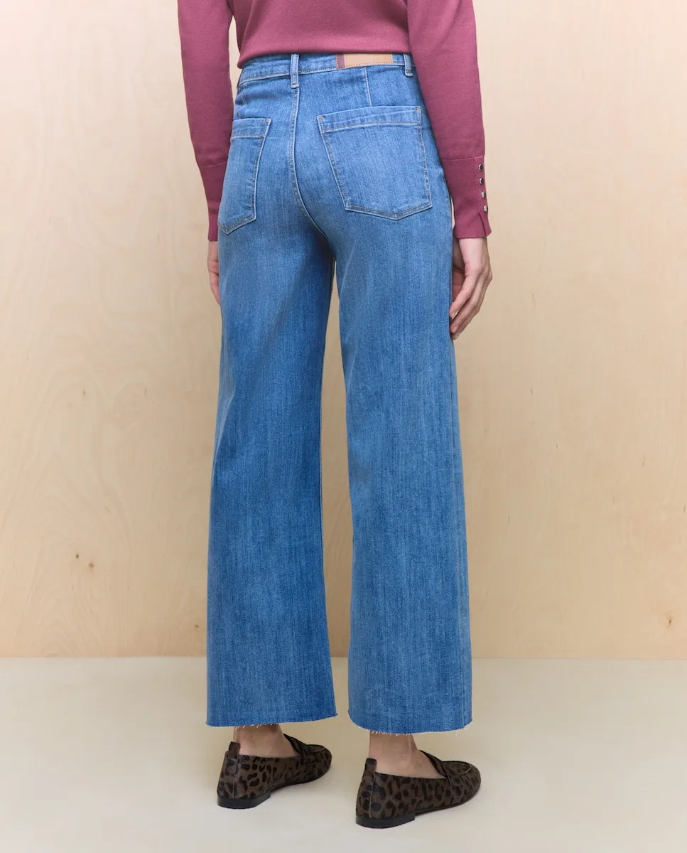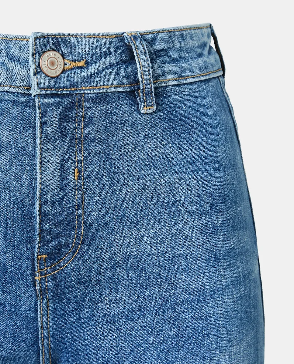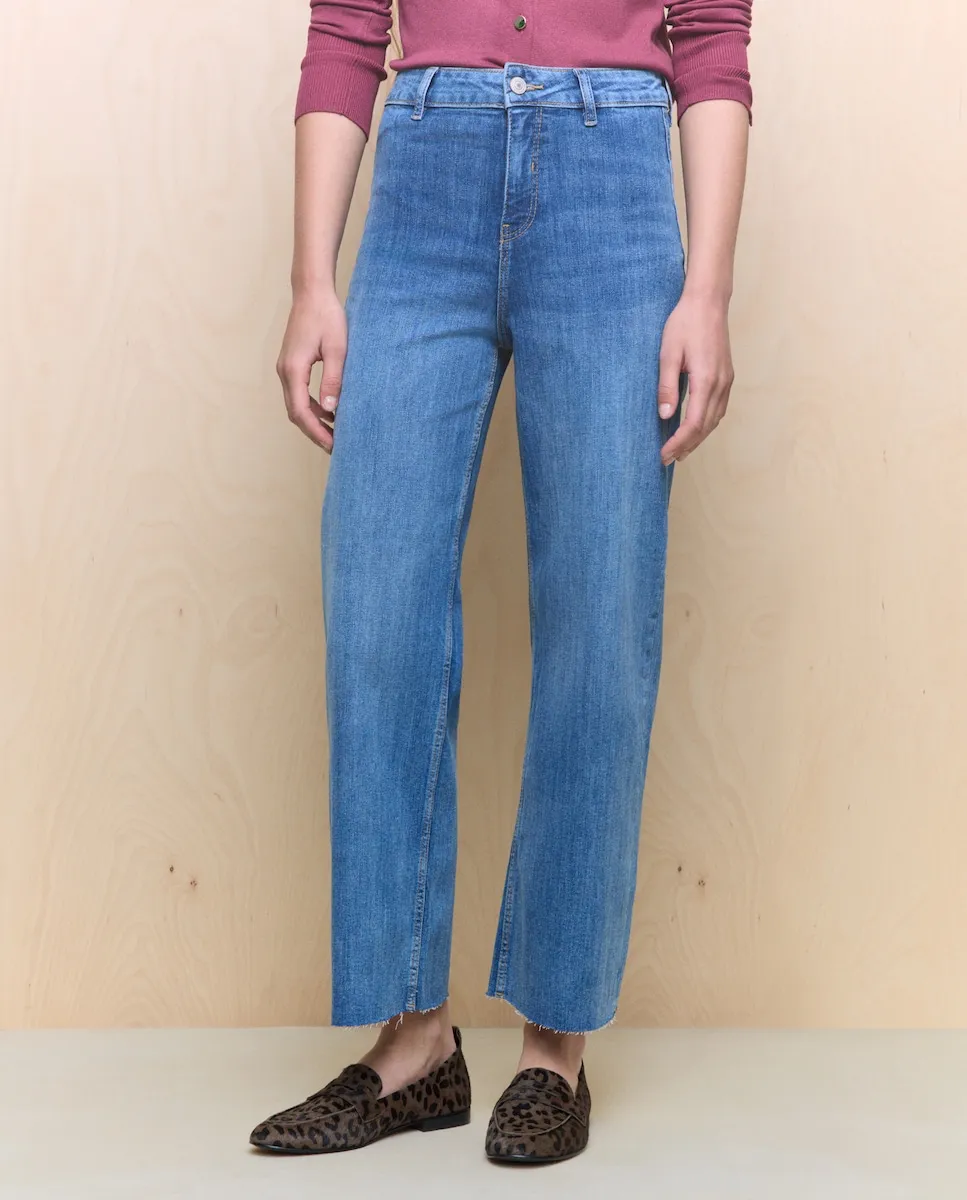 Джинсы с пятью карманами из хлопкового денима с легким эластаном для оптимального комфорта. Модель со стандартной посадкой от талии до бедер и прямым свободным кроем до низа. Высокая талия с передней застежкой на молнию и пуговицу. Укороченная длина, открывающая щиколотку. Стирка выполнена с использованием технологий, позволяющих экономить энергию и воду на всех этапах производства. Хлопок BCI. Джинсы с широкими штанинами - базовый элемент гардероба.
