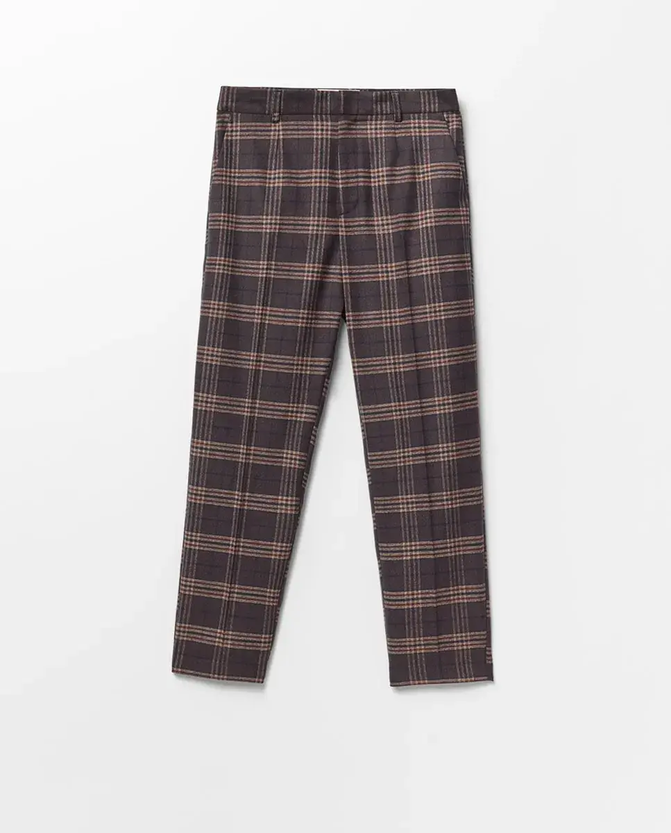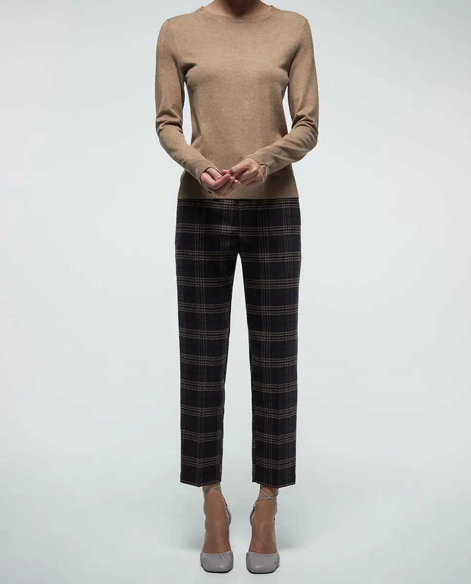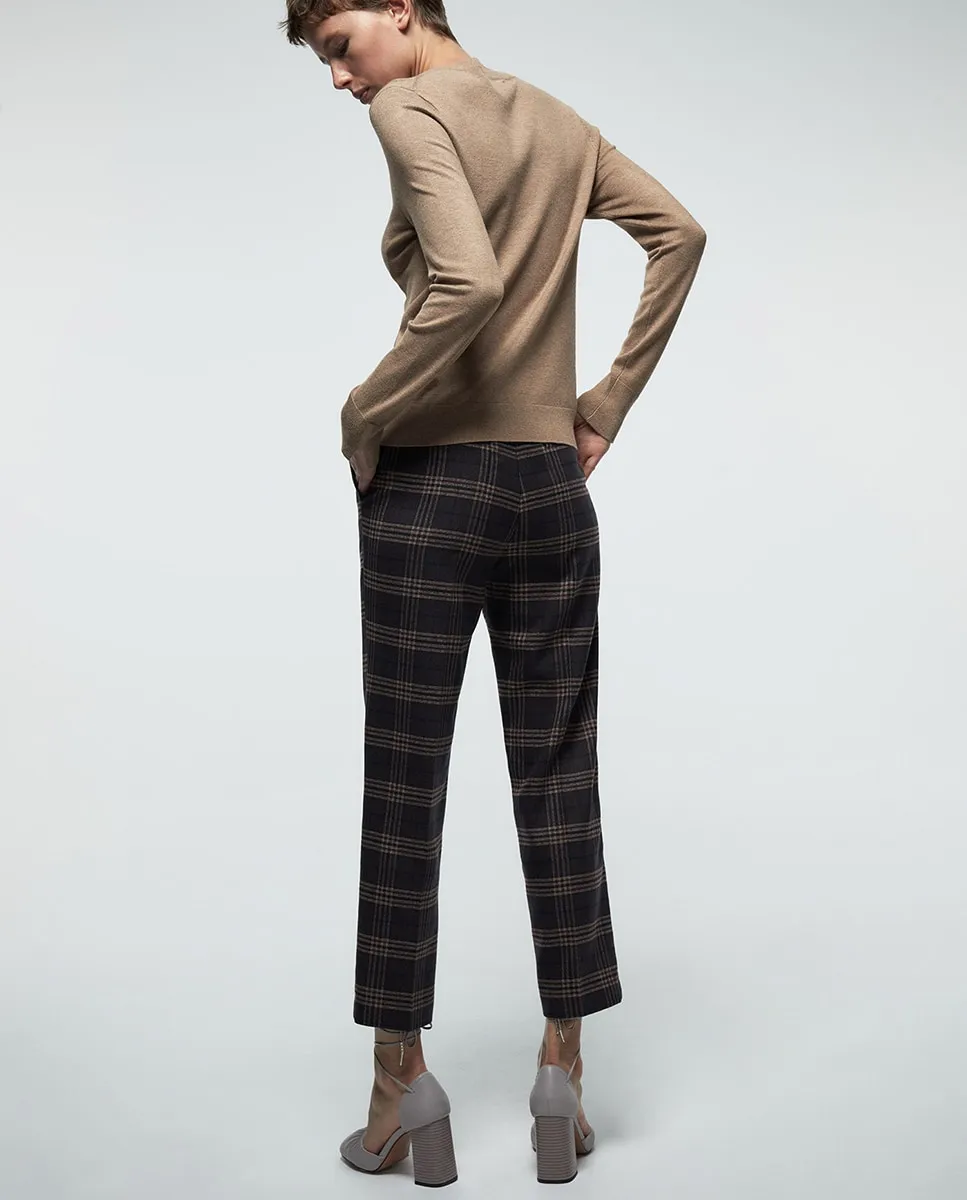 Брючные костюмные штаны в клетку с передней застежкой на крючок и молнию с карманами