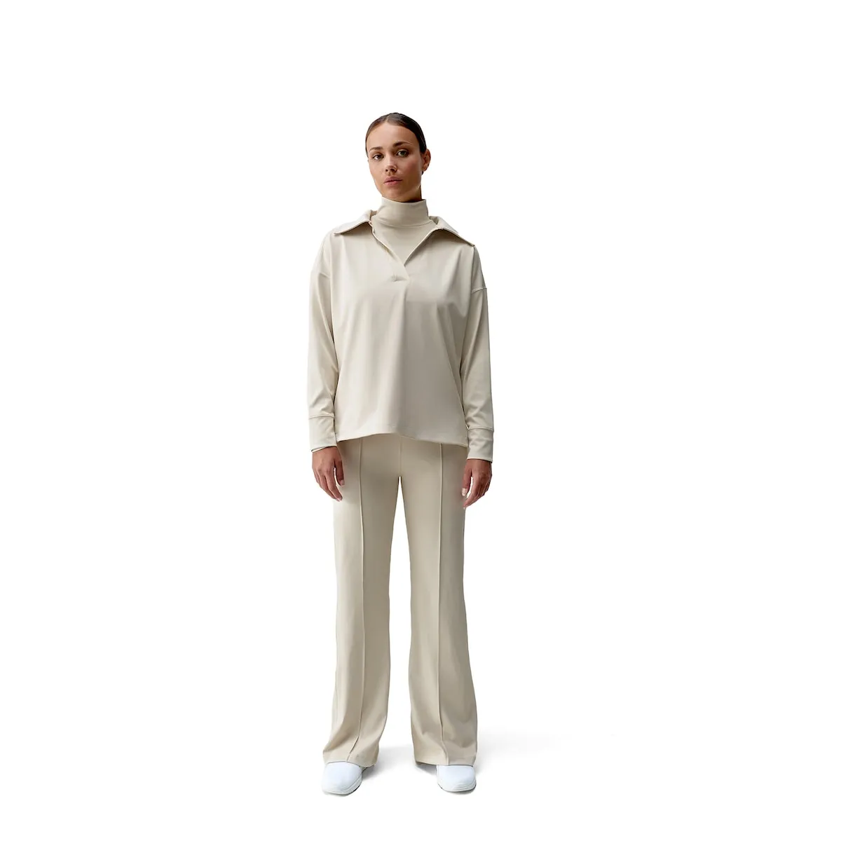 Длинные брюки с широкими штанинами и боковыми карманами. Ткань «Skin_Move». Идеальный дизайн для создания свободного и комфортного силуэта, для отдыха или повседневной активности. Устойчивые волокна, ткань с четырехсторонней растяжкой, высокая защита от солнца, быстрое высыхание.