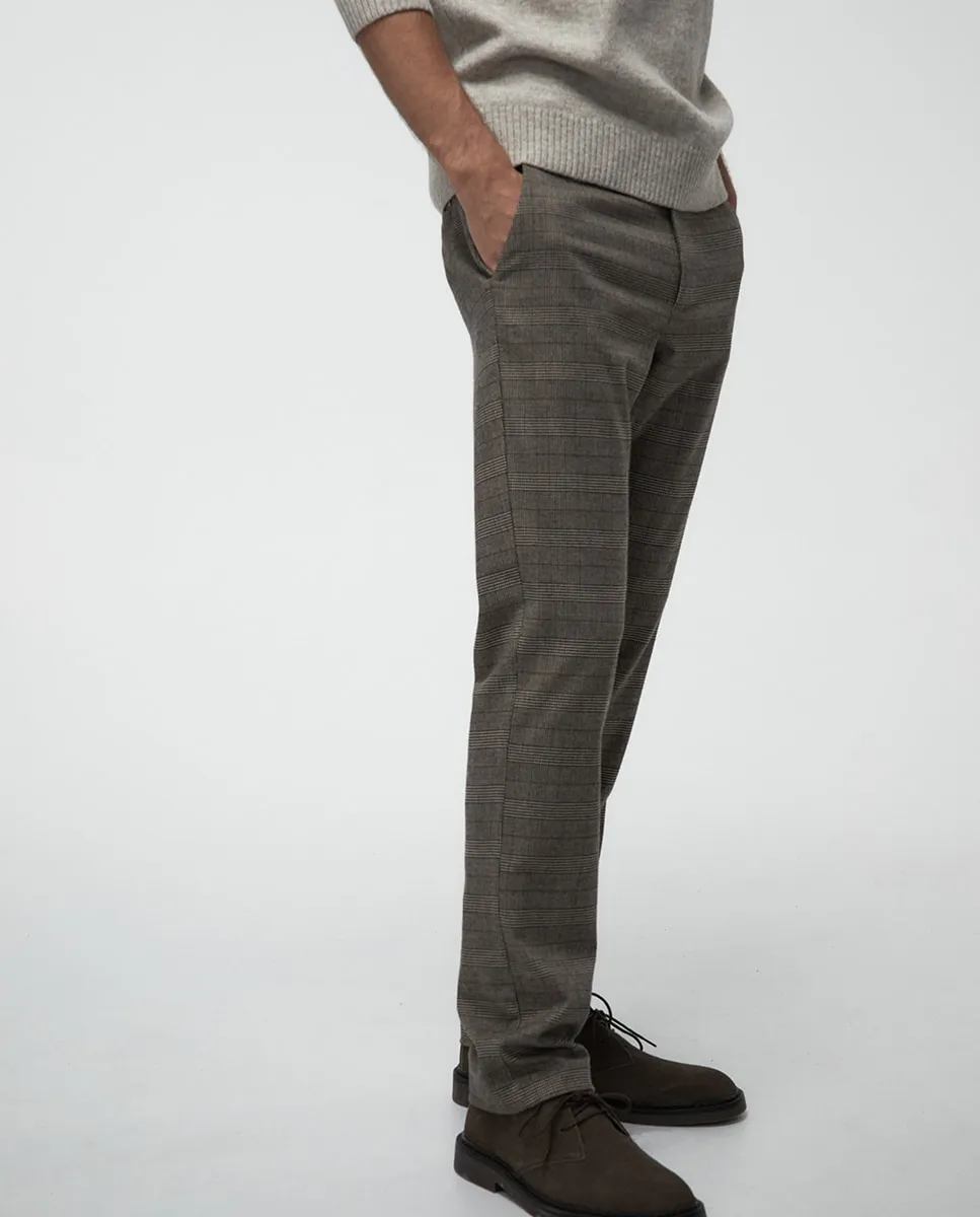 Прямые брюки в клетку с карманами и передней застежкой на молнию и пуговицу