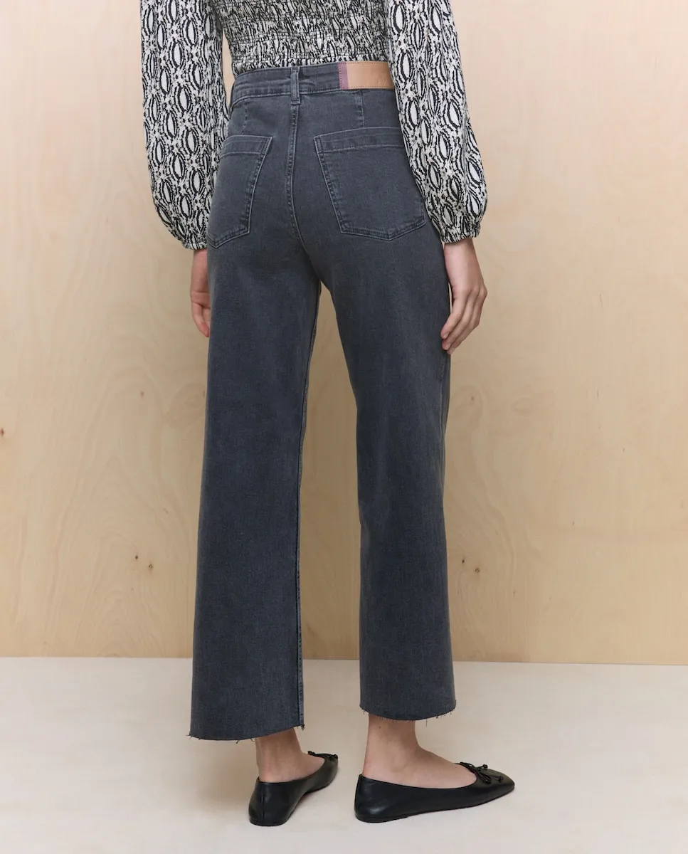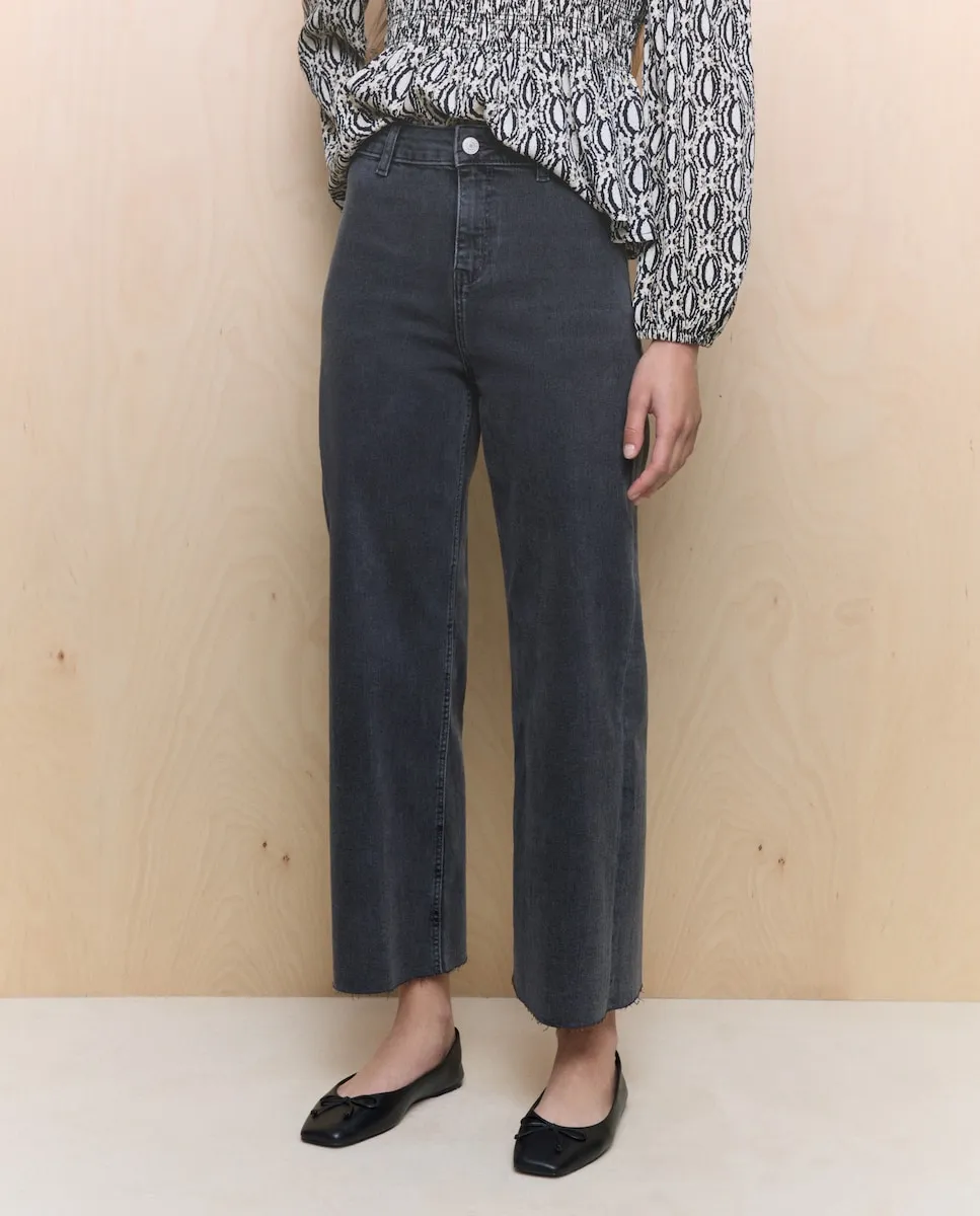 Джинсы с пятью карманами из хлопкового денима с легким эластаном для оптимального комфорта. Модель со стандартной посадкой от талии до бедер и прямым свободным кроем до низа. Высокая талия с передней застежкой на молнию и пуговицу. Укороченная длина, открывающая щиколотку. Стирка выполнена с использованием технологий, позволяющих экономить энергию и воду на всех этапах производства. Хлопок BCI. Джинсы с широкими штанинами - базовый элемент гардероба.