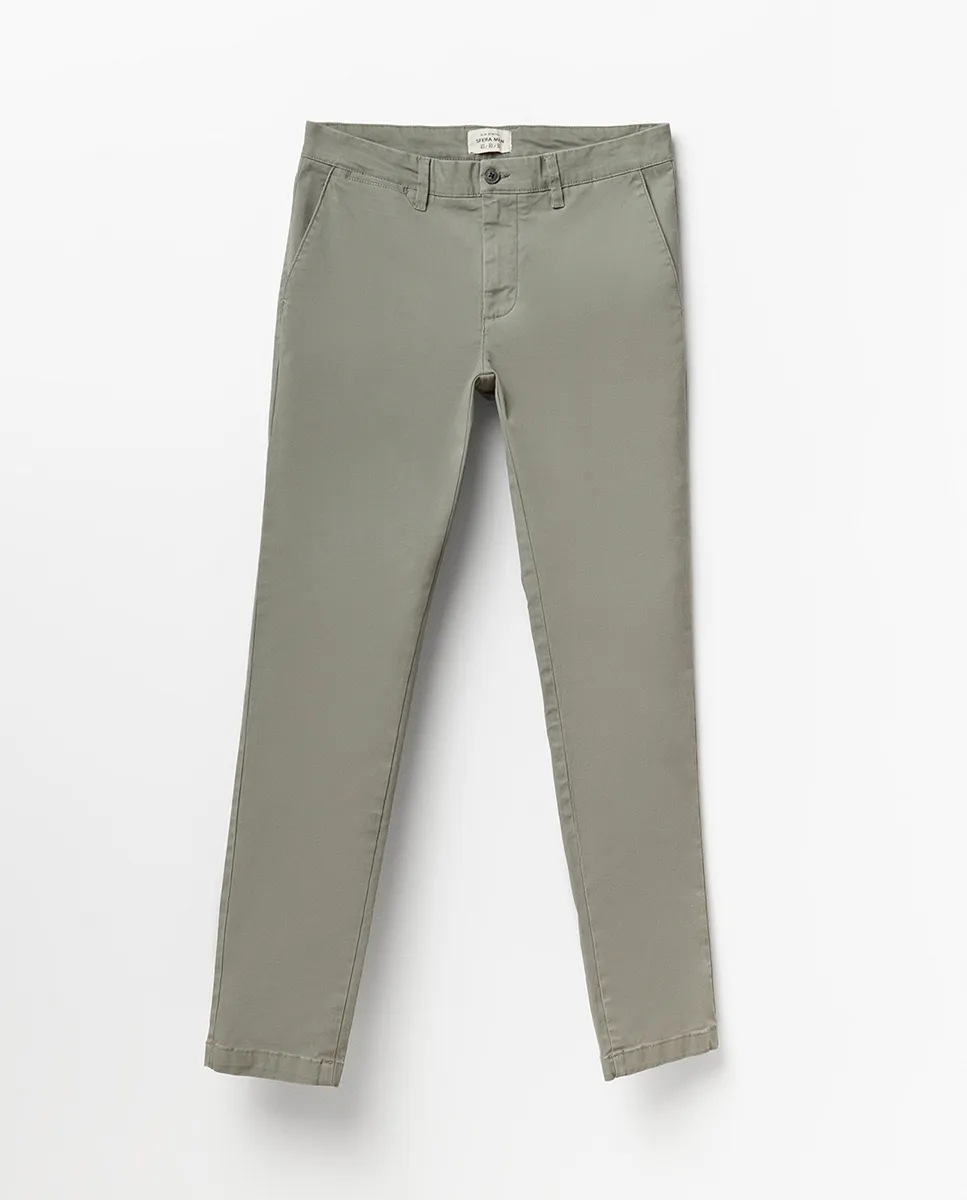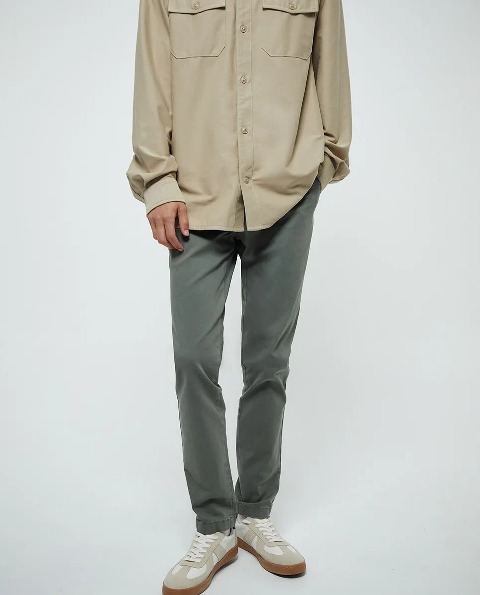 Прямые узкие чиносы с карманами. Застежка на пуговицу и молнию.