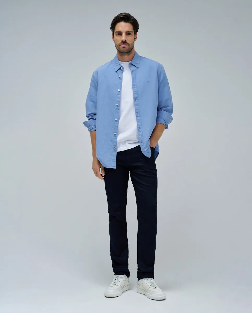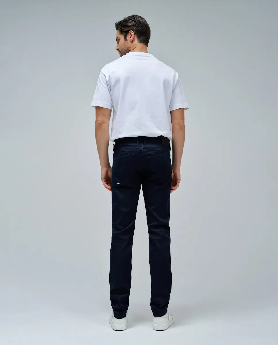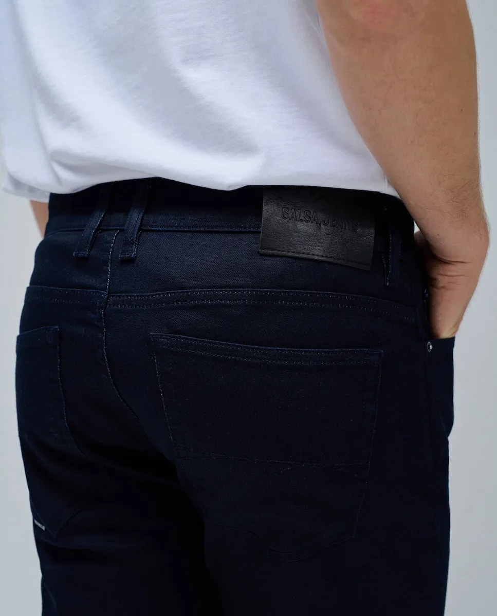 Брюки с узкой посадкой подчеркивают вашу внешность. С фронтальной застежкой на молнию и пятью функциональными карманами, эти брюки сочетают элегантность и практичность. Откройте для себя вне времени стиль и комфорт наших брюк.- Брюки Slim- Цвет синий- Средняя посадка- Застежка на молнию и пуговицу- Узкие штанины- Пять карманов- С шлевками для поясаДля справки: модель ростом 1,87 м и носит размер 32.