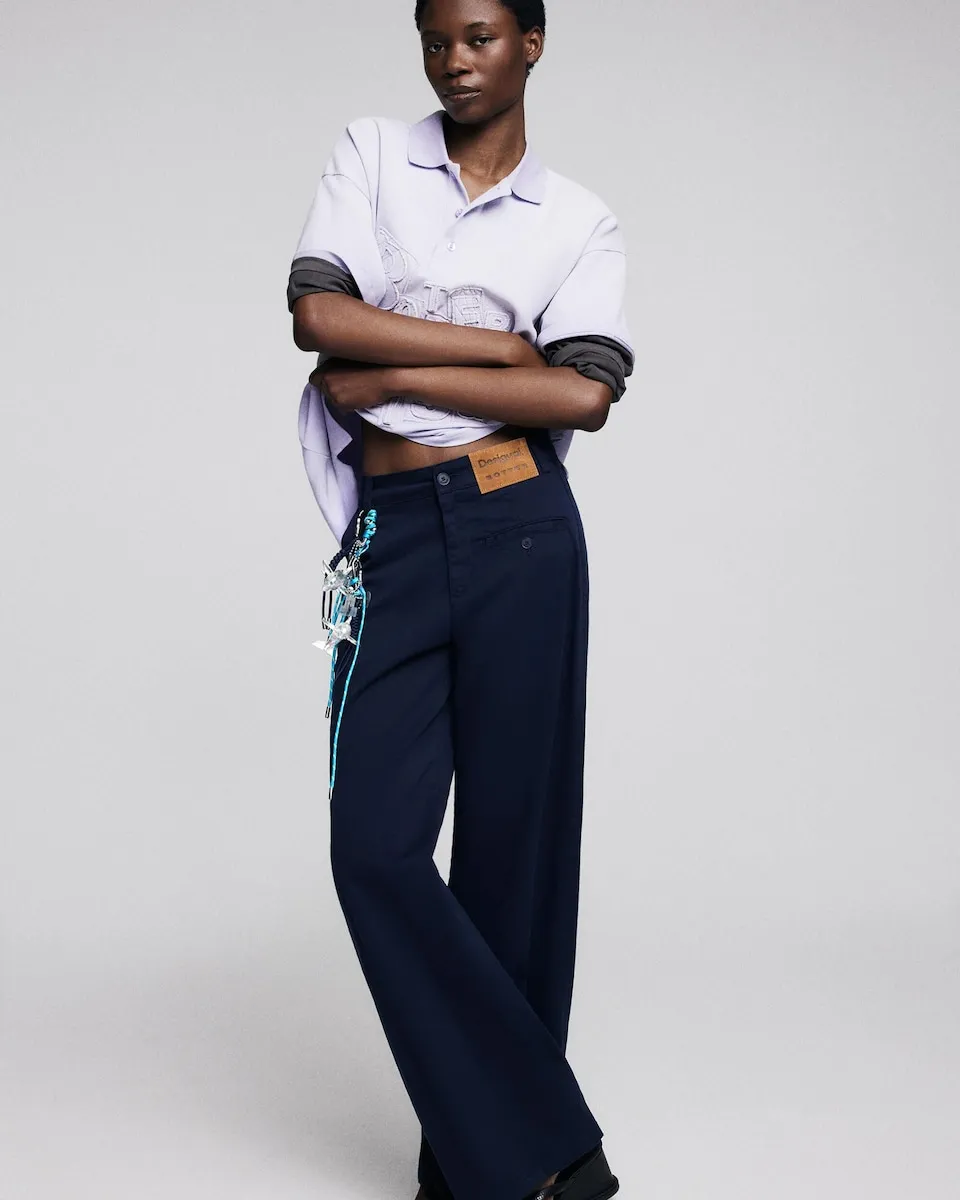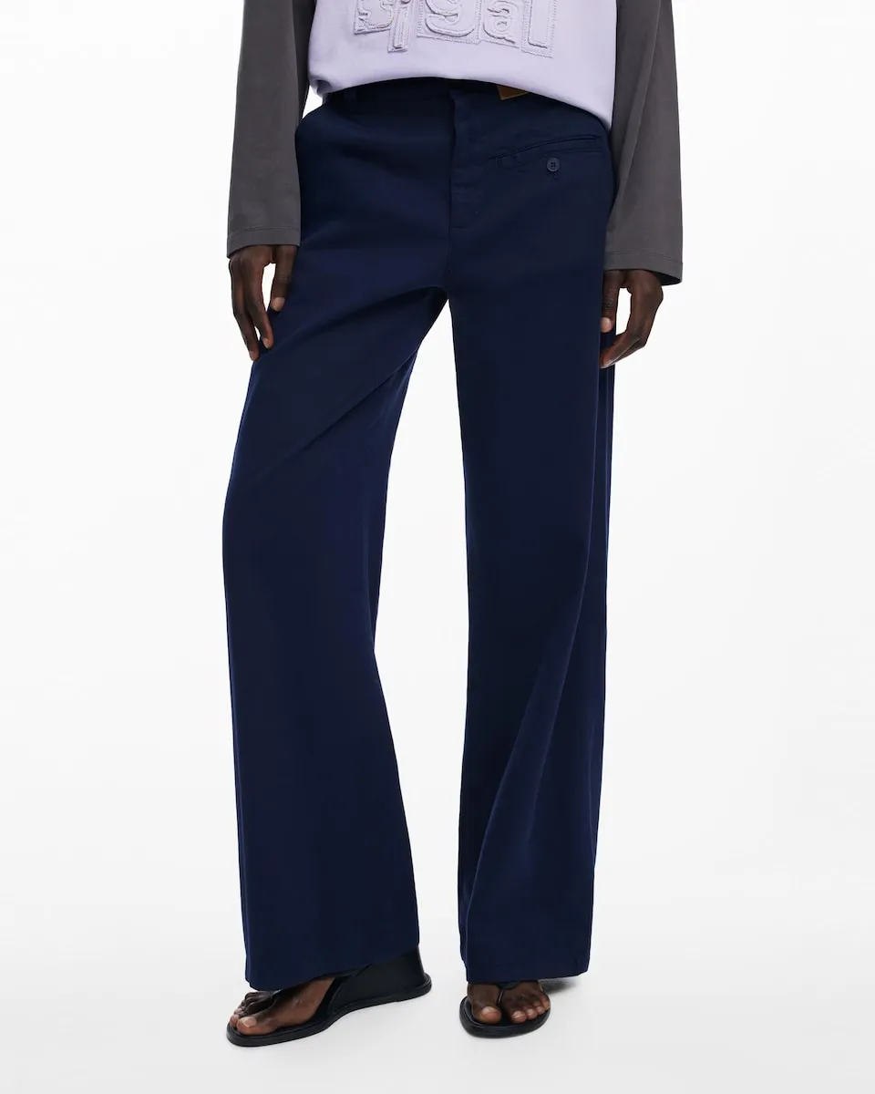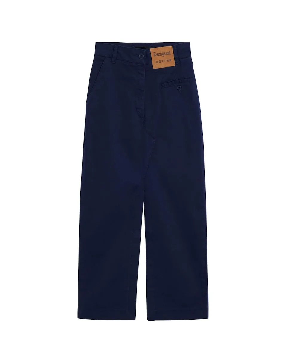 Брюки прямого кроя с дизайном карманов, поменянных местами между передней и задней частью, и деталью из тисненой кожаной этикетки на передней стороне. Крой: широкий. Длина: длинные. Застежка: на пуговицу и молнию. Кожаная этикетка с тисненым логотипом на передней части. Botter. Приобретая хлопковые изделия Desigual, вы поддерживаете наши инвестиции в Better Cotton. Этот продукт получен через систему массового баланса и может не содержать Better Cotton. bettercotton.org/massbalance.