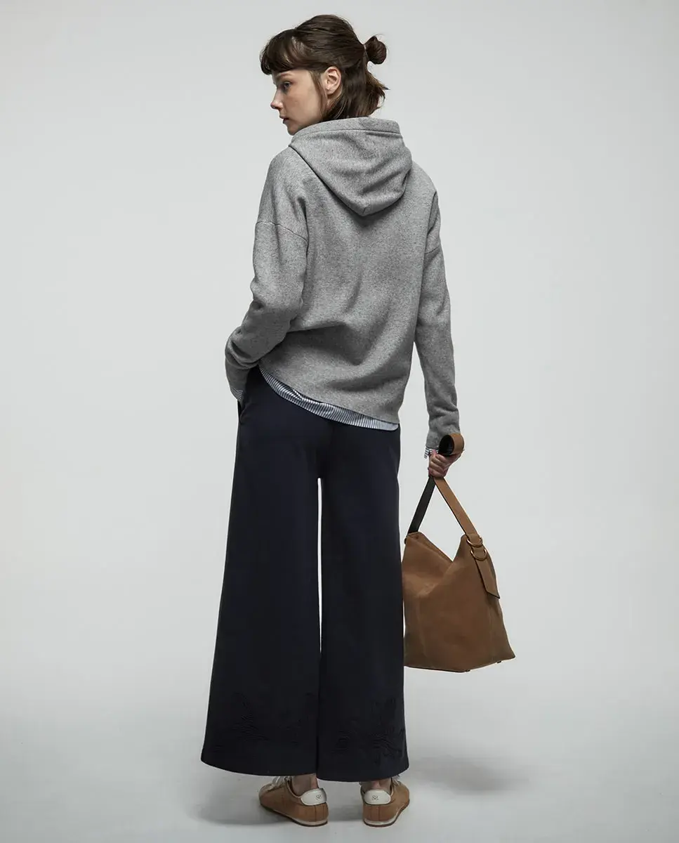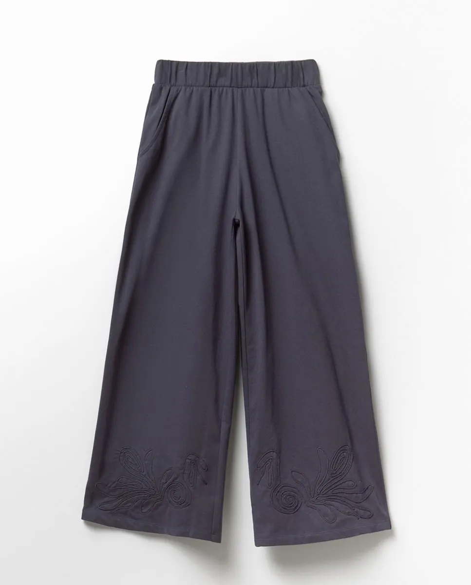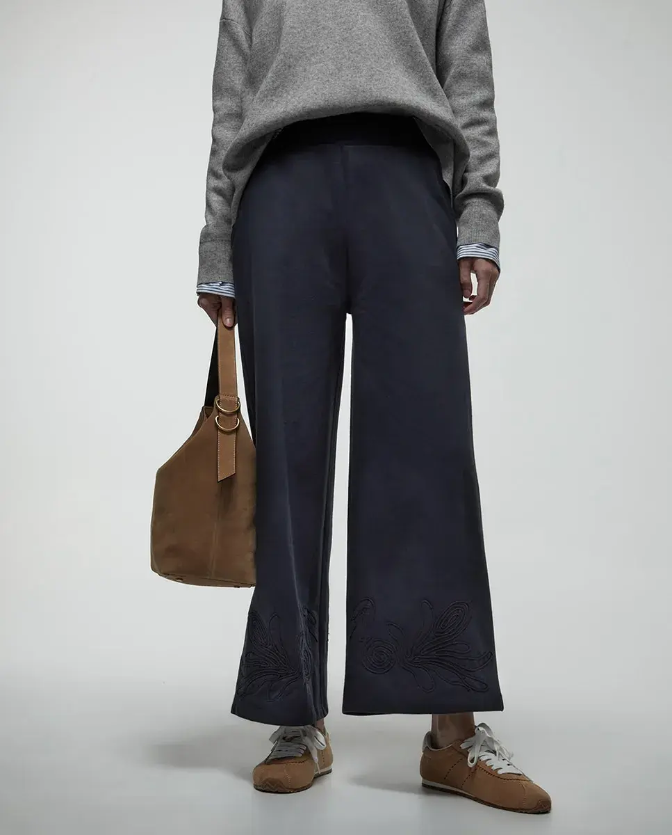 Укороченные брюки с резинкой на поясе и низе с вышивкой. Ткань из хлопковой смеси