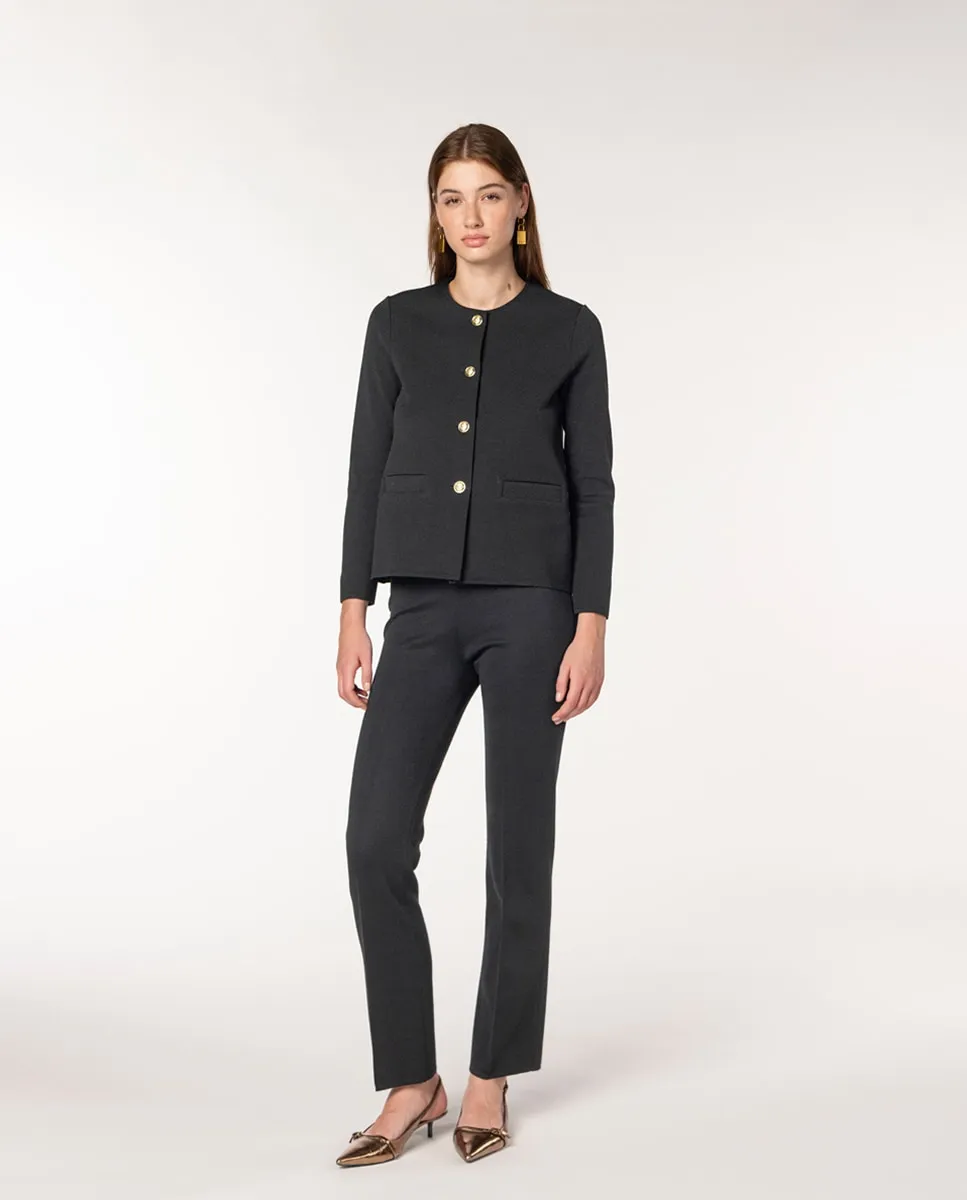 Брюки, сочетающие крой изысканного пошива с комфортом трикотажа, идеальные для долгих дней встреч или совещаний. Прямого кроя и с высокой талией, они выполнены с эластичным поясом для удобной и выгодной посадки. Их универсальность делает их обязательной частью гардероба. Доступны в других цветовых вариантах.
