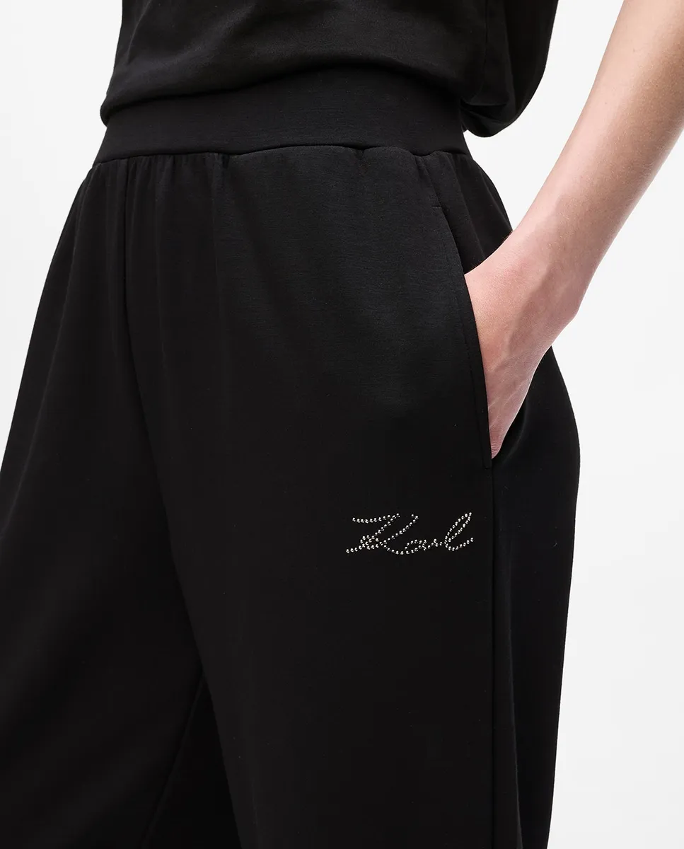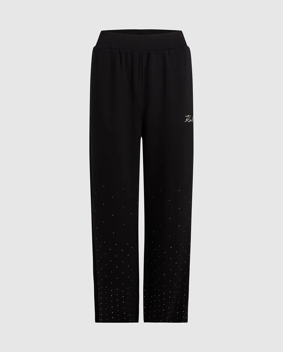 Поднимите ваш повседневный стиль на новые высоты изысканности с этими брюками от Карла Лагерфельда, изделием, которое сочетает спортивный комфорт с ослепительным оттенком гламура.